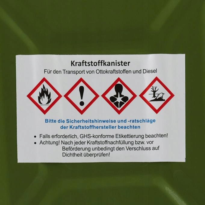 Если вы хотите заправлять или хранить бензин, дизельное топливо или масло, эта прочная металлическая канистра станет для вас правильным выбором. Бидон вмещает до 10 литров и оснащен практичной ручкой для удобства транспортировки. Плотный байонетный замок гарантирует, что топливо не вытечет из запасной канистры в любом положении. Кроме того, предохранительный штифт предотвращает непреднамеренное открытие застежки.