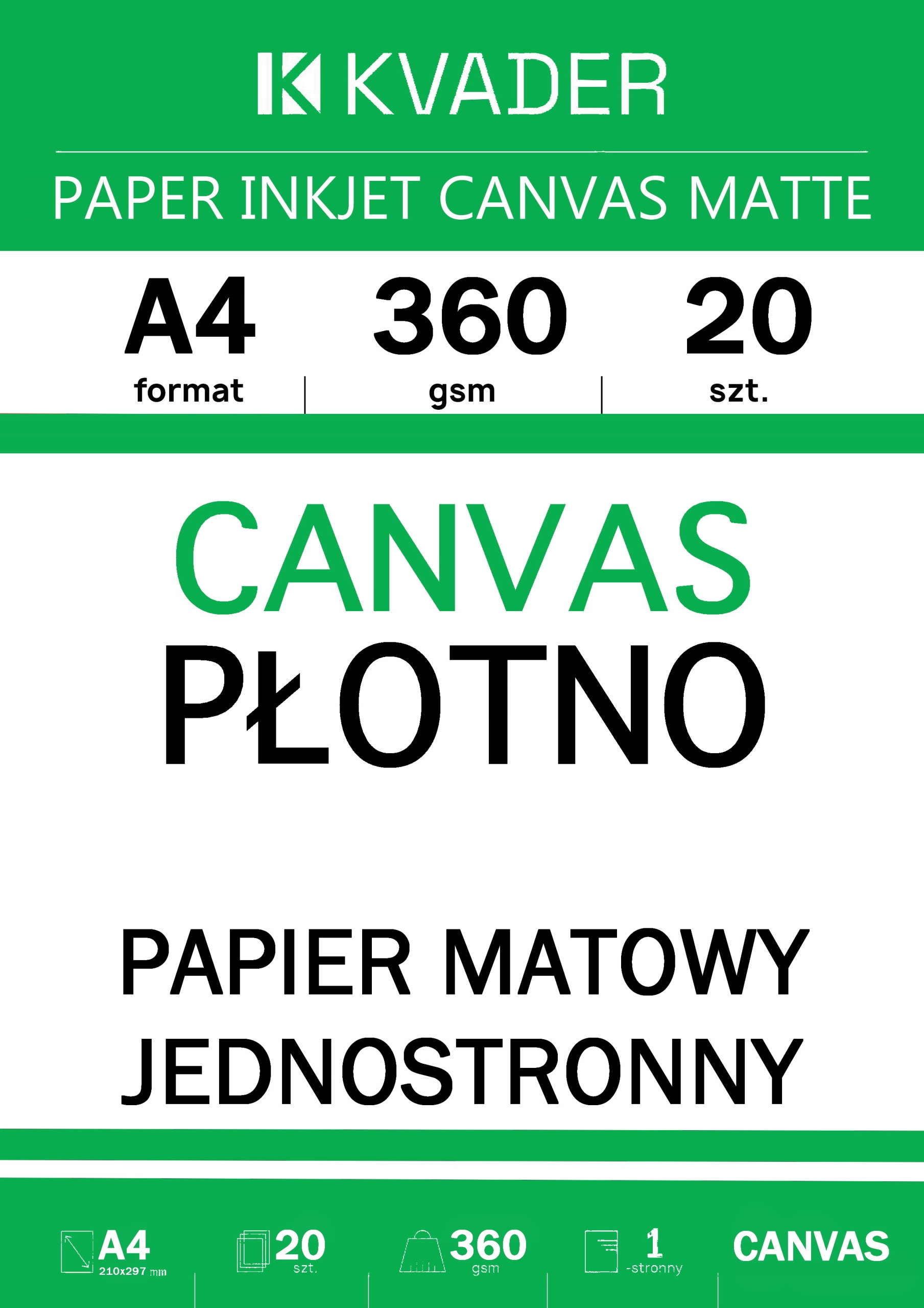 КАНВА А4 ДЛЯ ЧОРНИЛЬНОГО ПРИНТЕРА ПАПІР МАТОВИЙ НАТУРАЛЬНИЙ КАНВАС 360г 20шт