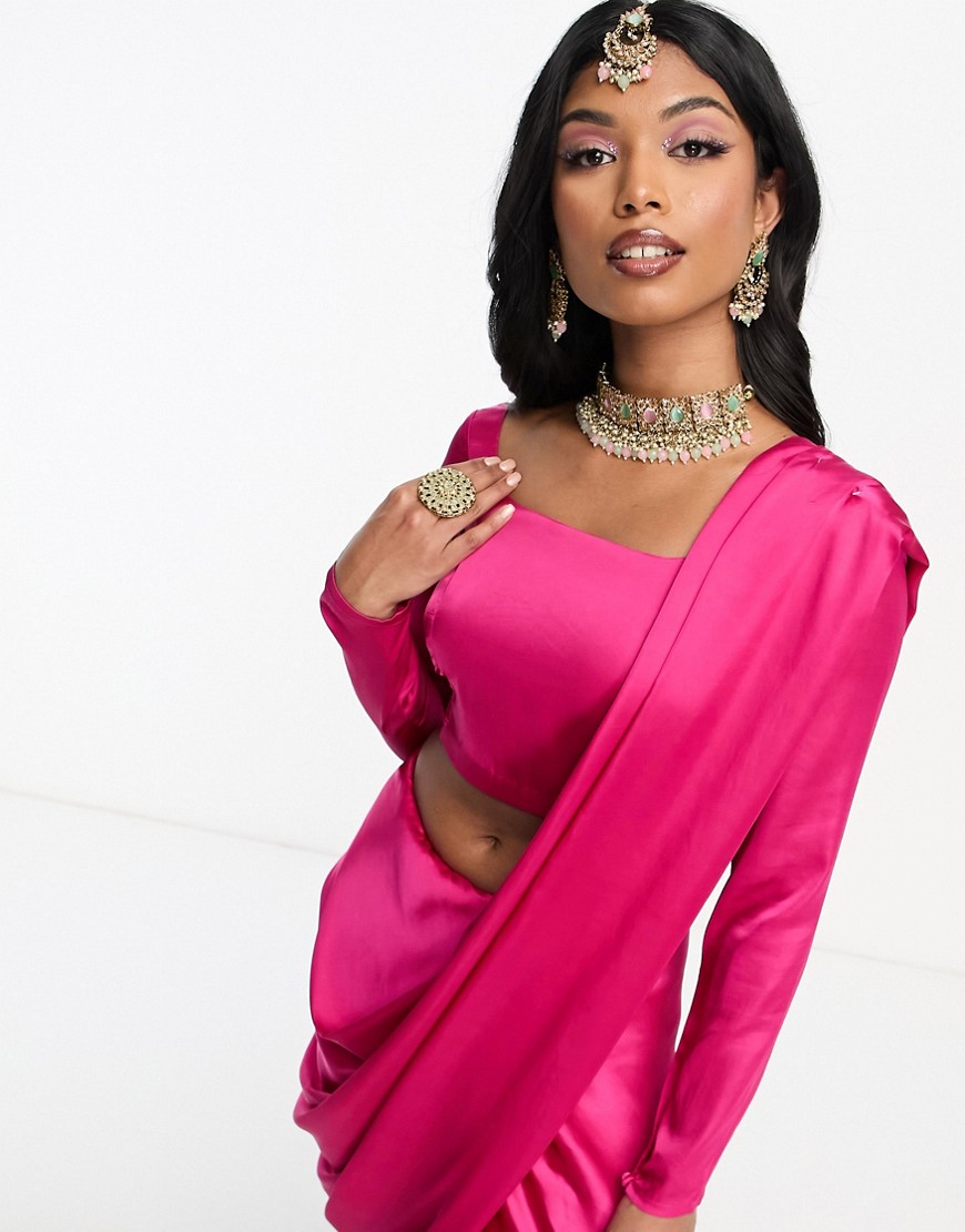 Kanya London Pink Satin Saree XL (42)