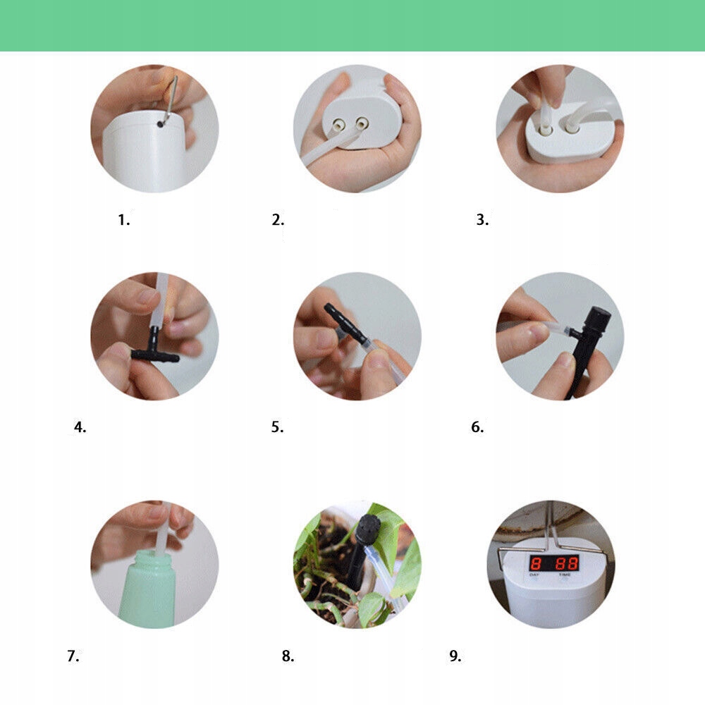 💧💧 【Автоматическая система полива с таймером】 Эту поливочную машину можно настроить на 9 дней и она будет поливать автоматически. один раз в день, продолжительность каждой составляет 0–99 секунд (0 секунд означает, что он не работает).