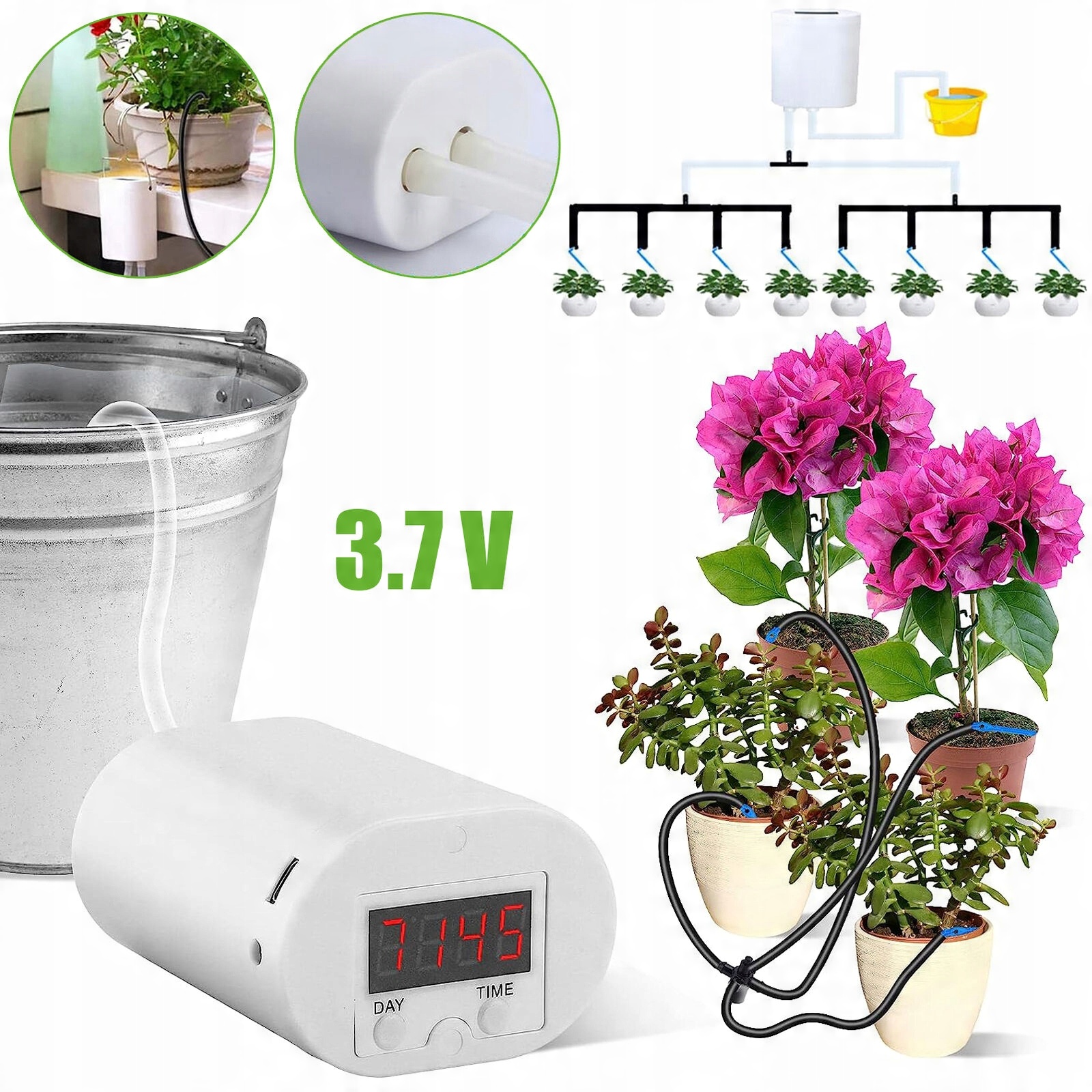 💧💧 【Хороший помощник】 Устройство автоматического полива может помочь вам с Ваш ежедневный своевременный полив, благодаря которому растения растут здоровее и имеют более длительный срок жизни. Вы можете настроить данные по количеству горшков с растениями, чтобы вовремя позаботиться о своих растениях, даже если вы находитесь в отпуске или командировке.