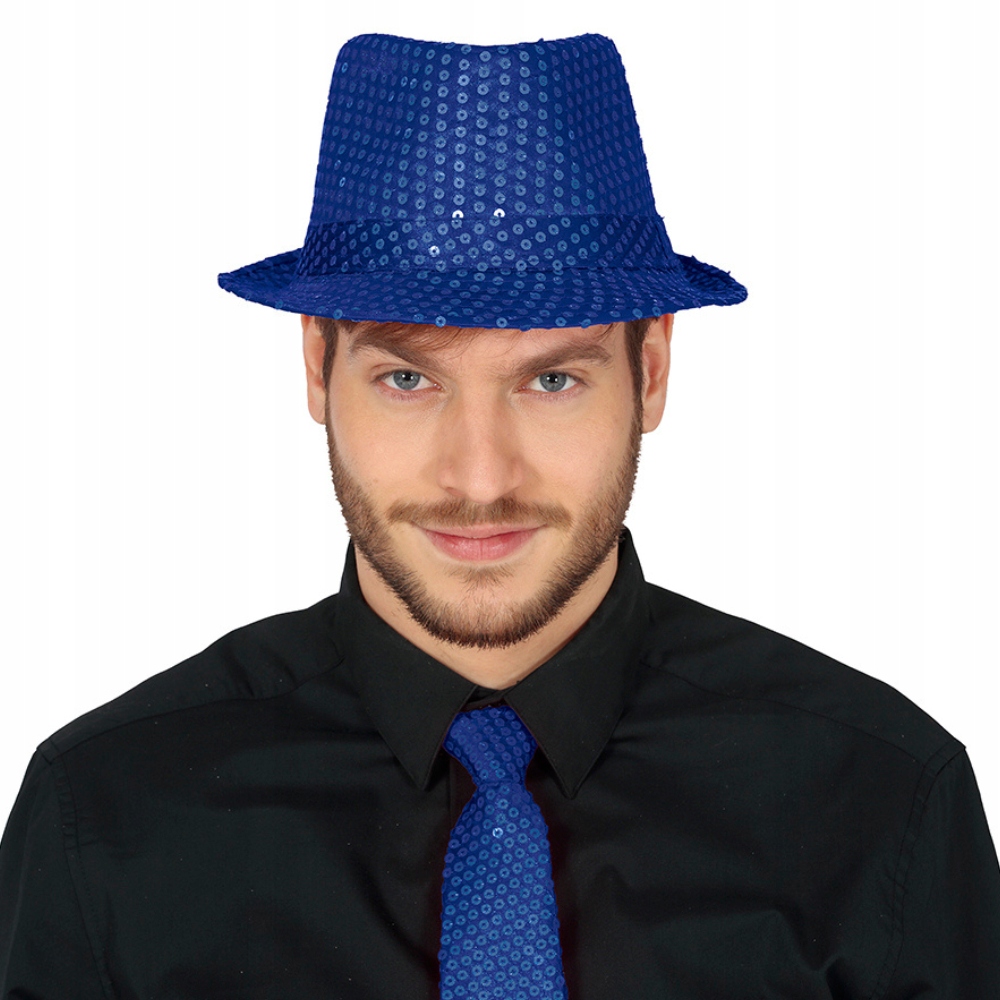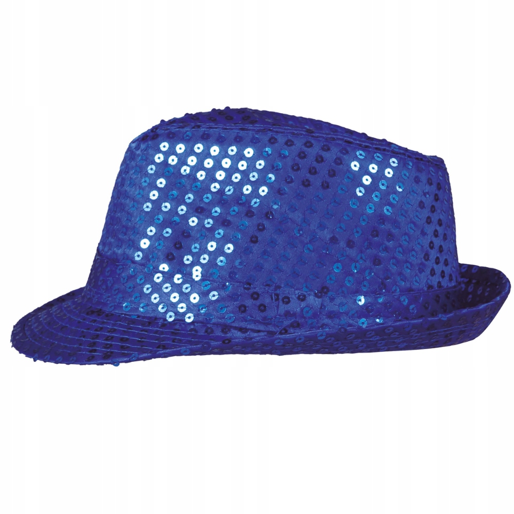 Kapelusz Gangsterski Mafia z cekinami NIEBIESKI przebranie DISCO