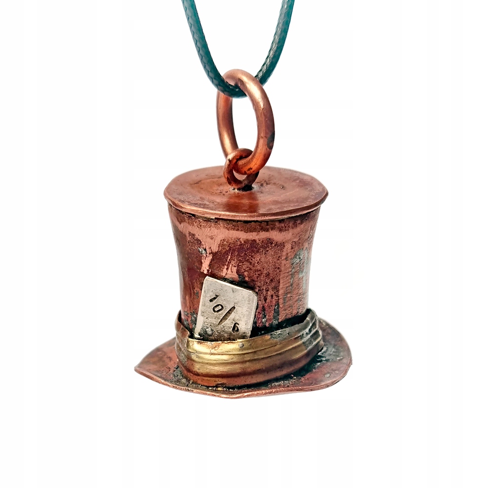 Kapelusz Szalonego Kapelusznika - niezwykły wisior; miedź, mosiądz, alpaka.