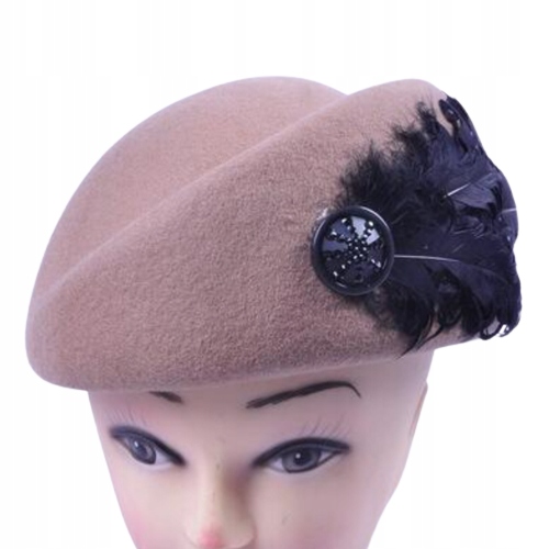 БЕРЕТ ЖЕНСКИЙ ГОРОДСКОЙ ШАПКА С ПЕРЬЯМИ