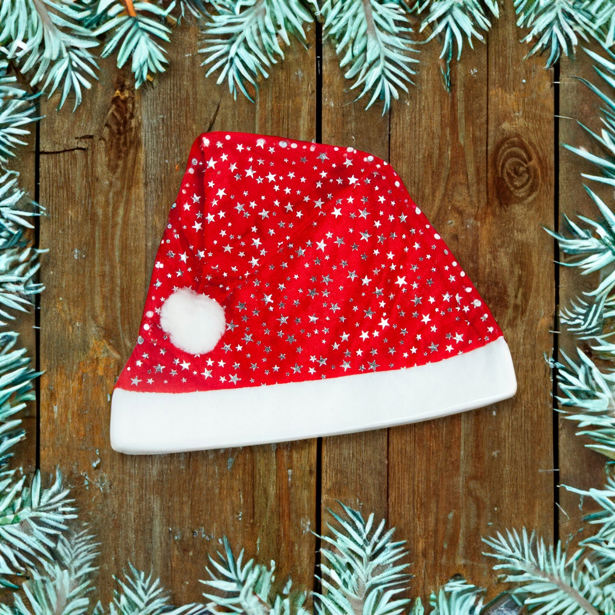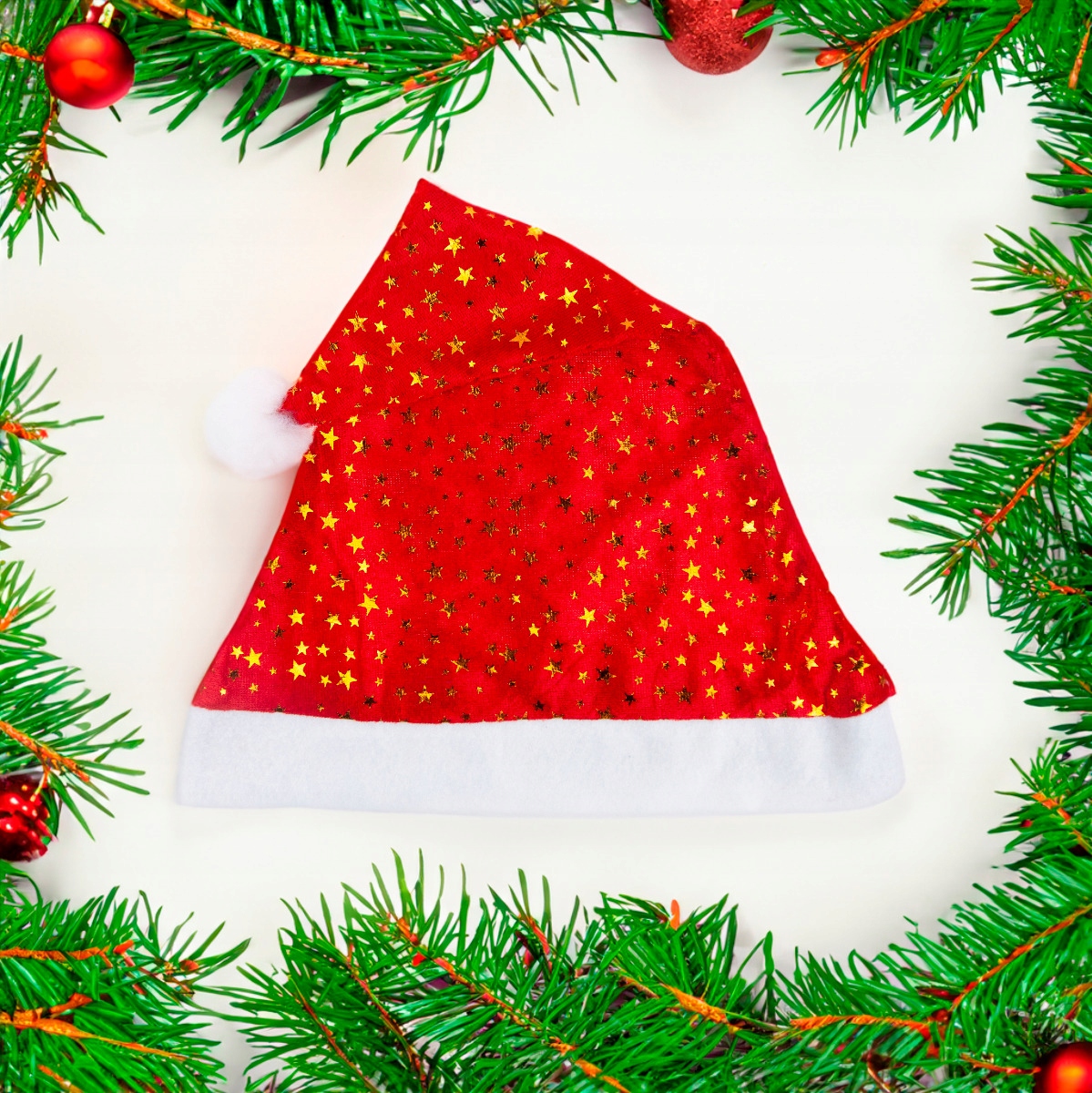 КАПЕЛЮХ САНТИ З ЗІРКАМИ ТА РІЗДВЯНИМ ЗІРКОВИМ ПОМПОНОМ