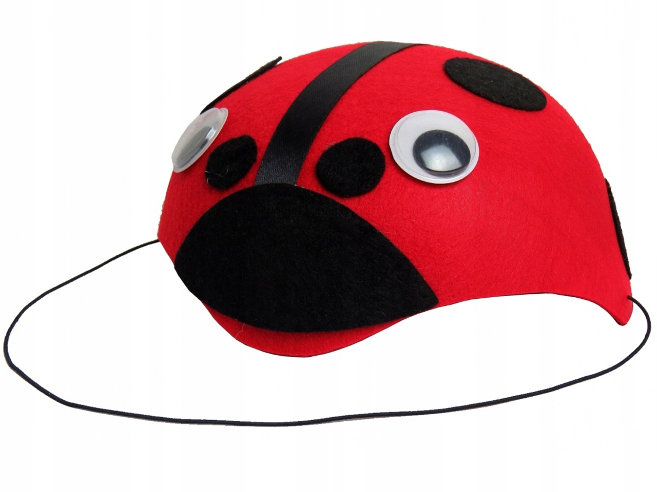 Эта шляпка — незаменимый элемент наряда божьей коровки. Кепка красная с черными элементами.