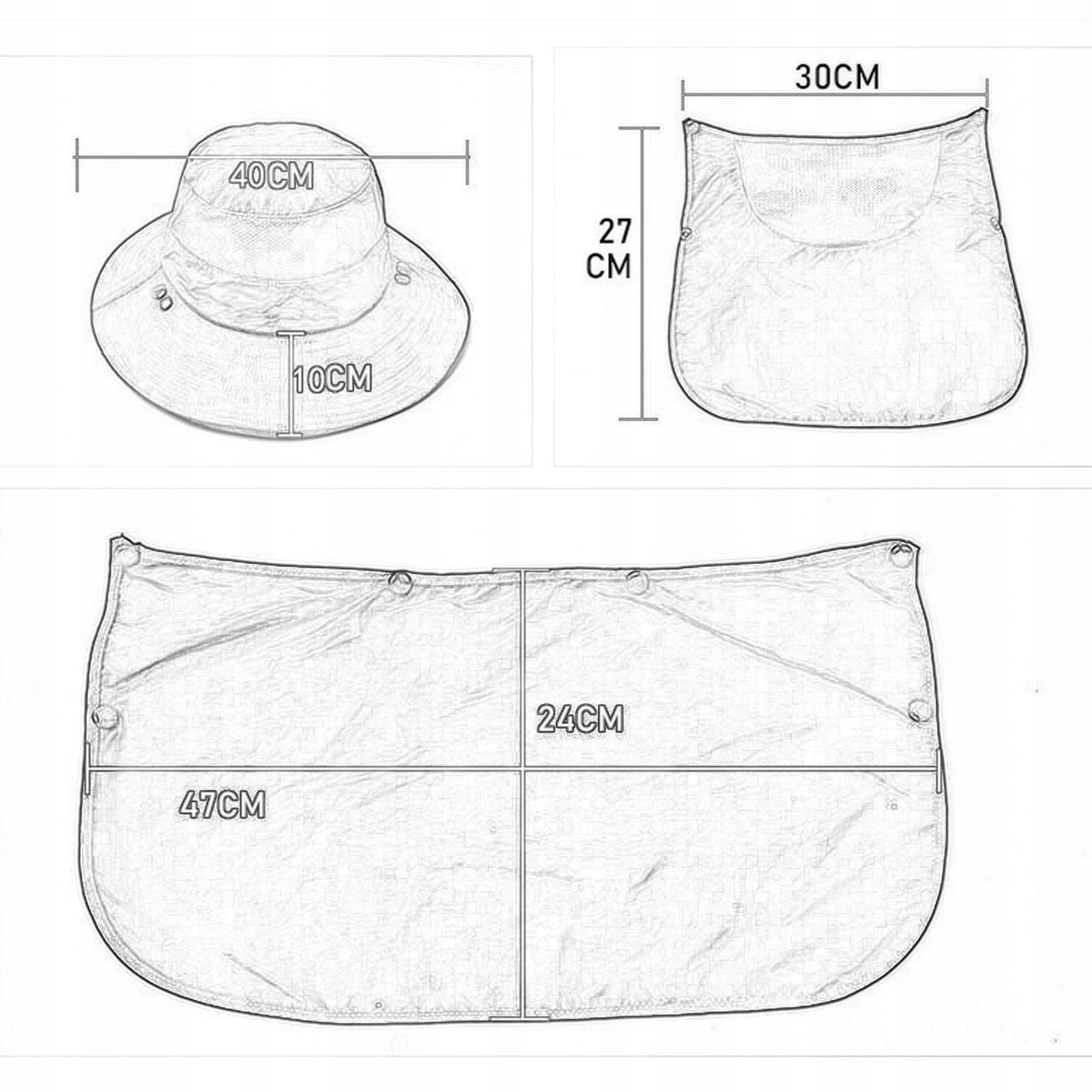 Правильный размер соответствия: диаметр шляпы составляет 40 см/15,75 дюйма, длина кольцевой развязки 10 см/3,94 дюйма, солнцезащитный крем составляет 30 см х 27 см/11,81 дюйма x 10,63 дюйма, а материал на шее составляет 47 см х 24 см/18,50 дюйма x 9,45 дюйма, и в сборе.
