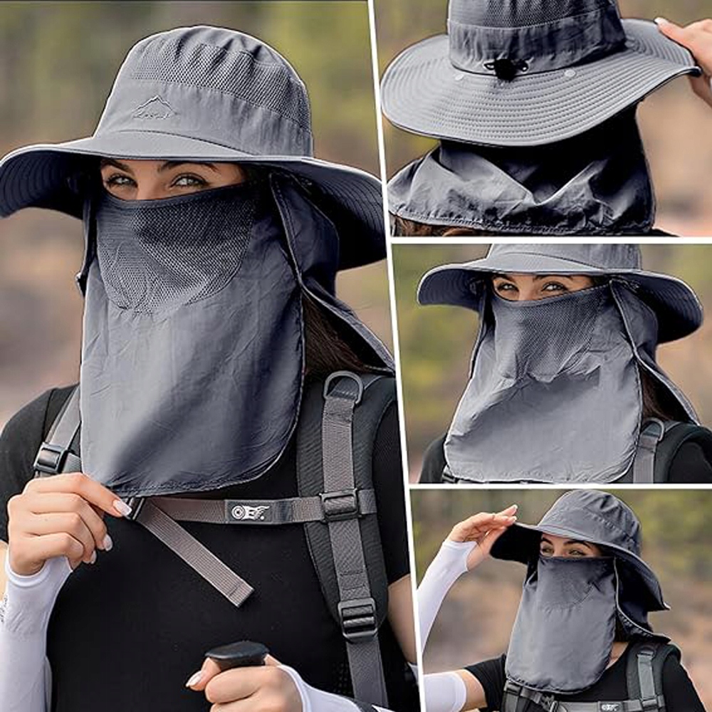 🌅 шляпа ведра с экраном лица, защита шеи, регулируемая струна от ветра, дышащая, солнцезащитная защита 360 ° · ›