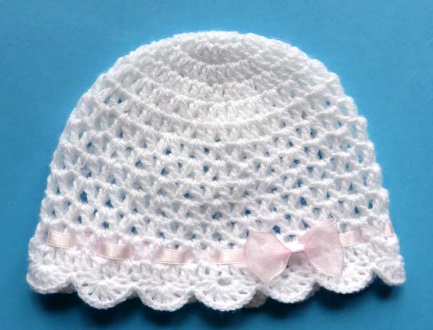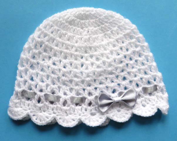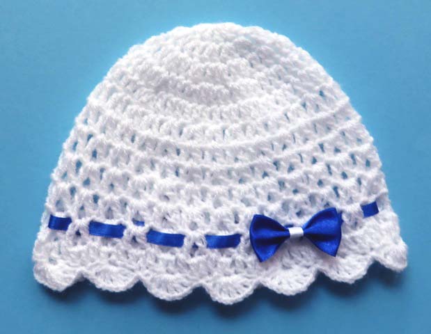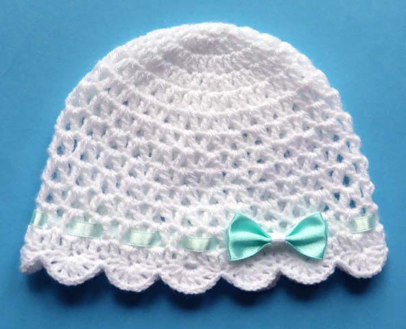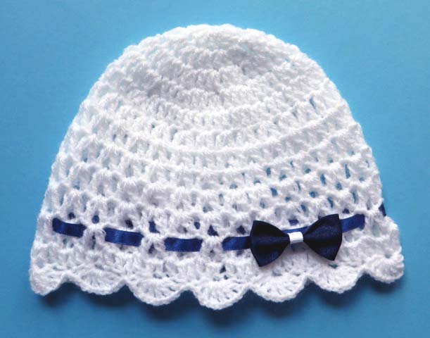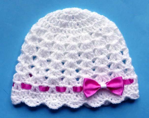 Шапка может быть выполнена в любом цвете пряжи и с фурнитурой с атласным (сатиновым) или шифоновым (тюль) бантиком.