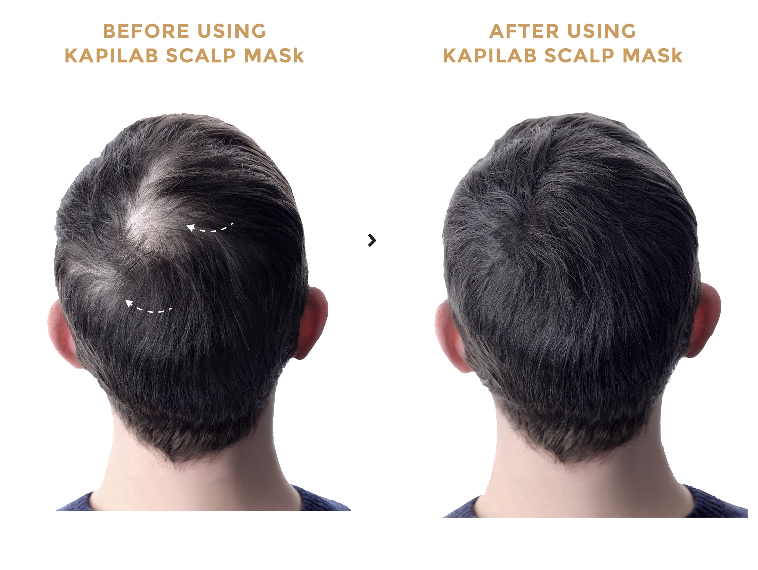 После нанесения на кожу головы истончения и пробелы больше не заметны, благодаря чему волосы выглядят естественными и густыми. Kapilab Scalp Mask часто используется в качестве альтернативы Kapilab Hair Fibers, но их также можно использовать вместе.
