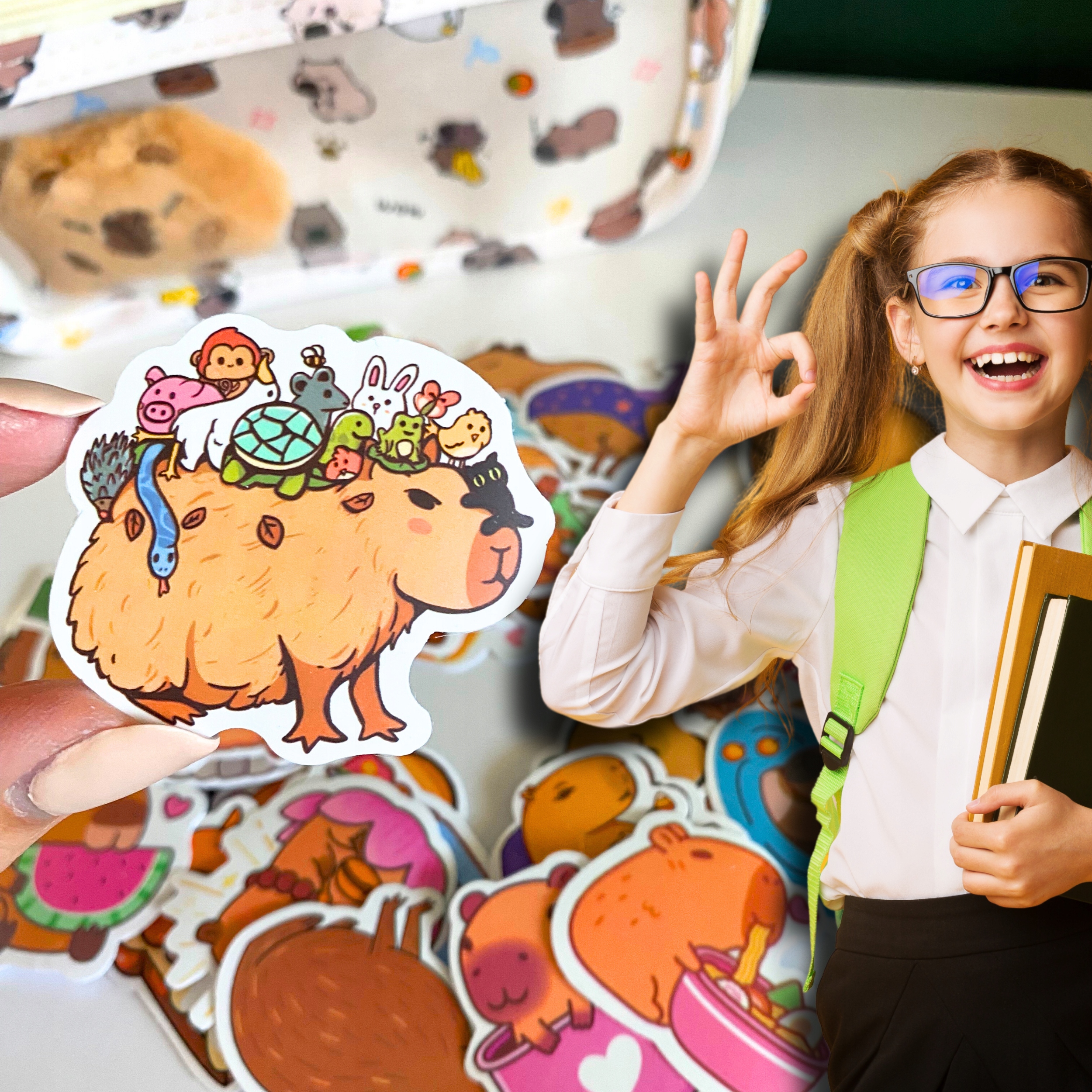 - Наклейки с капибаром являются водонепроницаемыми и устойчивы к солнцу, благодаря ПВХ. влага.