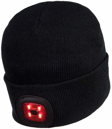 Теплая шапка со светодиодным фонариком спереди и сзади - зарядка через USB
