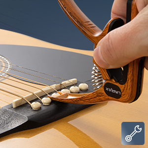 Встроенный съемник бриджа разработан специально для акустических гитар. Используйте гитарный каподастр в качестве рычага. Просто держите и снимайте гитарные ручки одной рукой, не беспокойтесь о повреждениях, вызванных использованием плоскогубцев и других инструментов.