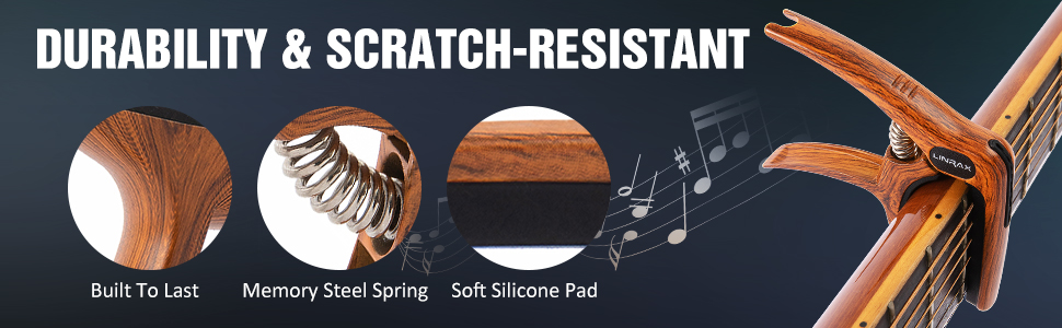 Гитарные каподастры Linrax C1, гитарные каподастры 3 в 1 с держателем медиатора и съемником моста, каподастр для акустической электрогитары, бас-гитары, укулеле, банджо, мандолины, каподастра, текстура дерева