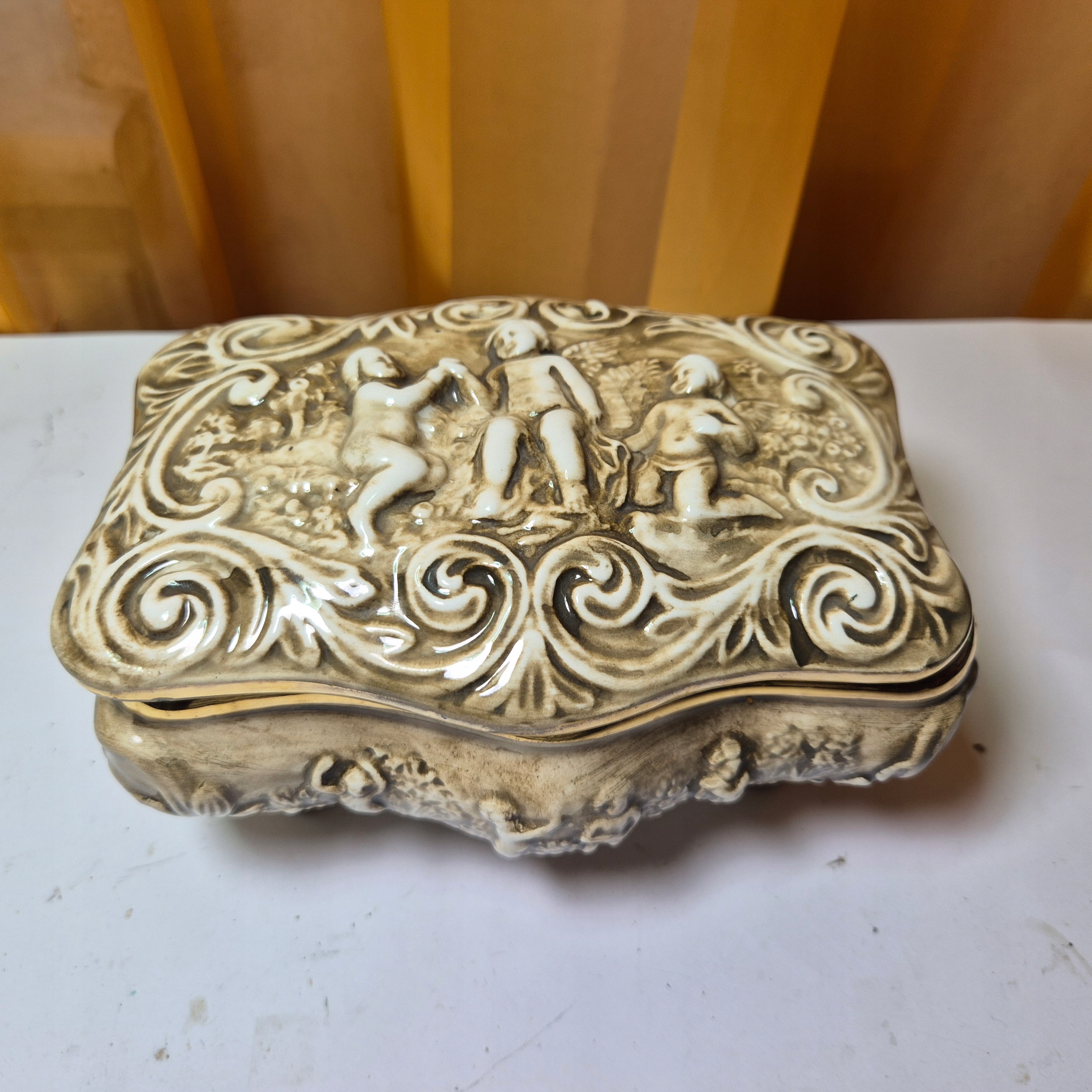 Каподимонте красивая очень старая фарфоровая Италия Винтажная шкатулка (23