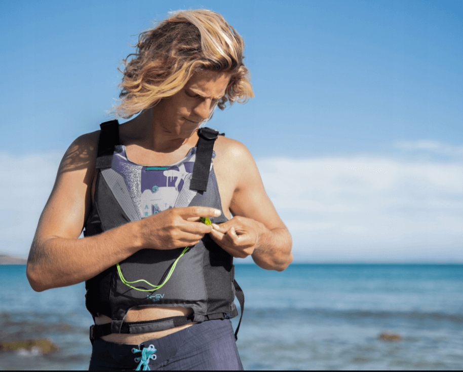 Благодаря продуманному проекту предлагает полную свободу движения и дополнительные функции безопасности, такие как отражающие панели, спасение свистка и регулируемые ремни на плечах. Версия 3.0 также оснащена задним карманом для бутылки с водой (до 1,5 литра), что делает его отличным выбором для длинных поездок.