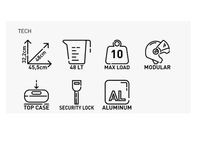 ВЕРХНИЙ КЕЙС KAPPA 48L MONOKEY KFR480A K'FORCE ALUMINIUM