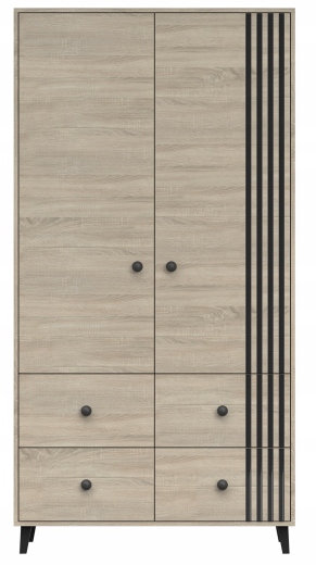 Капри двухдорного гардероба сочетает в себе современный скандинавский стиль с функциональностью и комфортом повседневного использования. Упакованный гардероб с четырьмя ящиками, традиционно открывающими двери, оборудованный полками и штурма. Яркая окраска гардероба добавляет очарование и придает всем интерьеру уникальный вид.