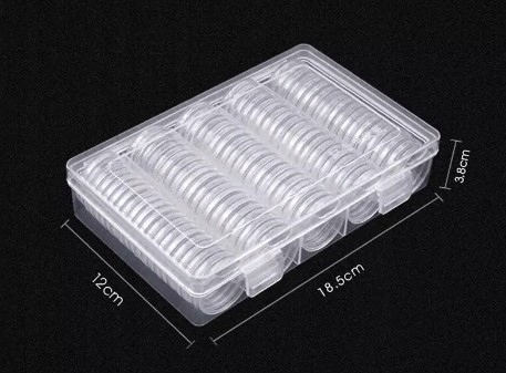 Набор из 100 штук крышек для монет с пенопластовым наполнением в 4-х размерах состоит из: