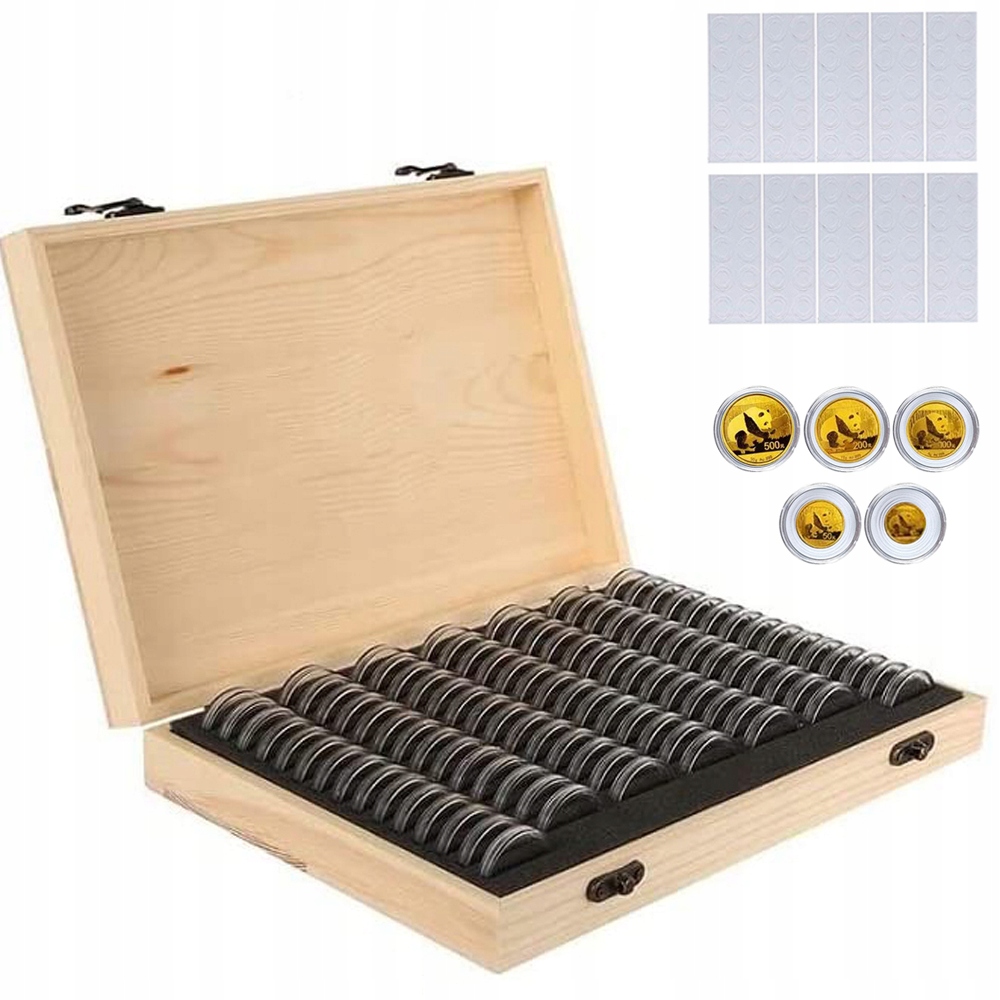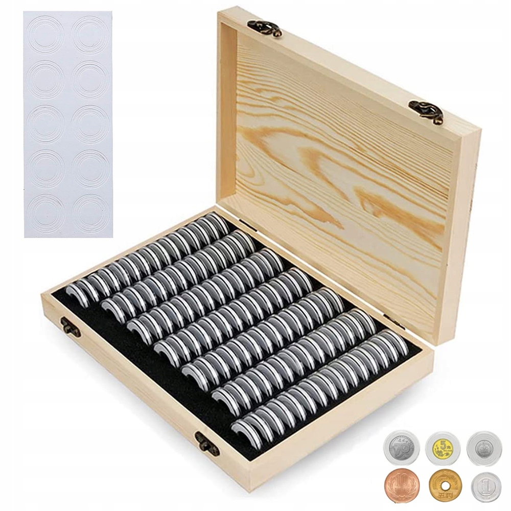 КАПСУЛЫ ДЛЯ МОНЕТ 100 ШТ. + ДЕРЕВЯННЫЙ ФОРМАТ ПРЕМИУМ