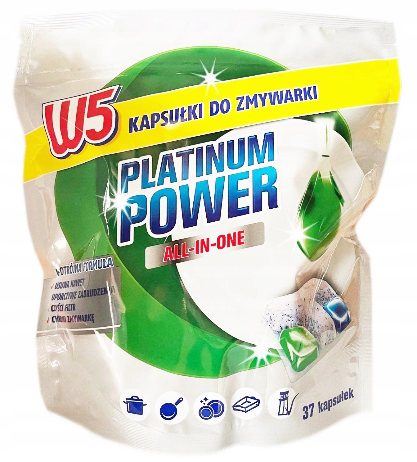 W5 All IN ONE PLATINUM КАПСУЛЫ ДЛЯ ПОСУДОМОЕЧНОЙ МАШИНЫ / упаковка 37 капсул.