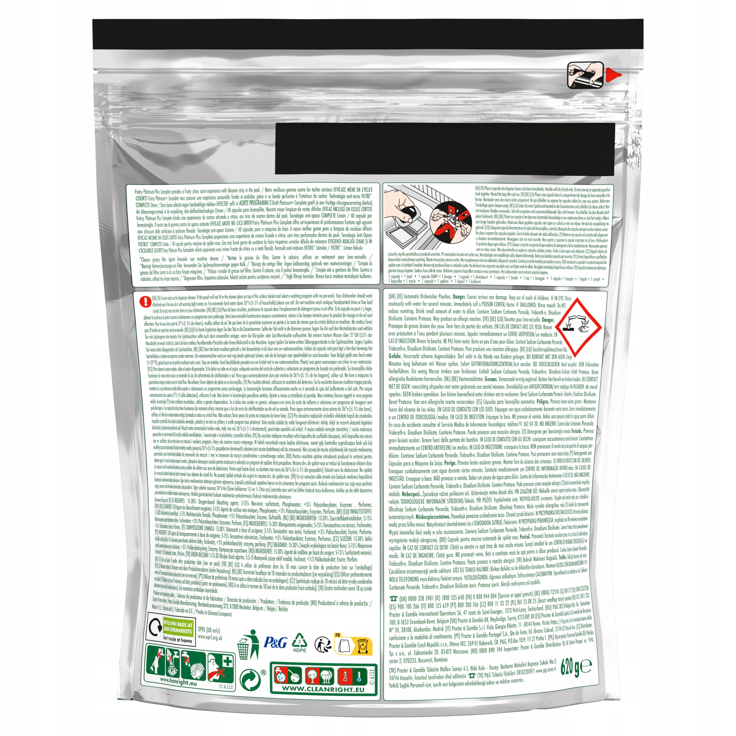 Таблетки для посудомоечной машины All In One Fairy Platinum Plus делают посуду сверкающей чистотой. Они обеспечивают невероятную силу Fairy и удаляют даже накопившийся со временем осадок, восстанавливая первозданное свечение сосудов. Fairy Platinum Plus с системой предварительной стирки позаботится об этой задаче за вас. Fairy Platinum Plus поможет вам экономить воду и заботиться об окружающей среде, избавляя от необходимости предварительного мытья посуды. Таблетки для посудомоечной машины Fairy представляют собой сочетание жидкости и порошка в одной эффективной капсуле. Наши капсулы быстро растворяются и сразу же начинают действовать, что делает их эффективными также при коротких циклах. И их использование очень просто. Вам не нужно их распаковывать. Просто поместите их в дозатор моющего средства вашей посудомоечной машины. Быстрорастворимые капсулы эффективно работают в коротких циклах. Их рекомендуют мировые производители посудомоечных машин. Использование соли и более легкое ополаскивание, а также защита стекла и серебра.