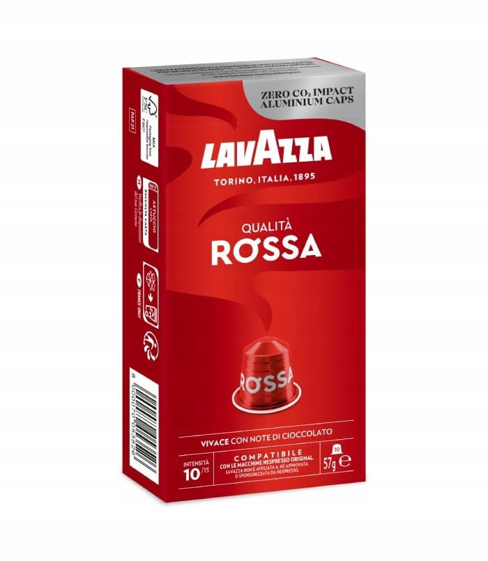 Кофейные капсулы Lavazza Nespresso Qualita Rossa — это смесь высочайшего качества из зерен арабики из Юго-Восточной Азии. После измельчения зерна заключаются в новые алюминиевые капсулы, которые на 100% нейтральны с точки зрения выбросов CO2. В одной упаковке содержится 10 капсул Lavazza Nespresso Qualita Rosso, совместимых с системой Nespresso.