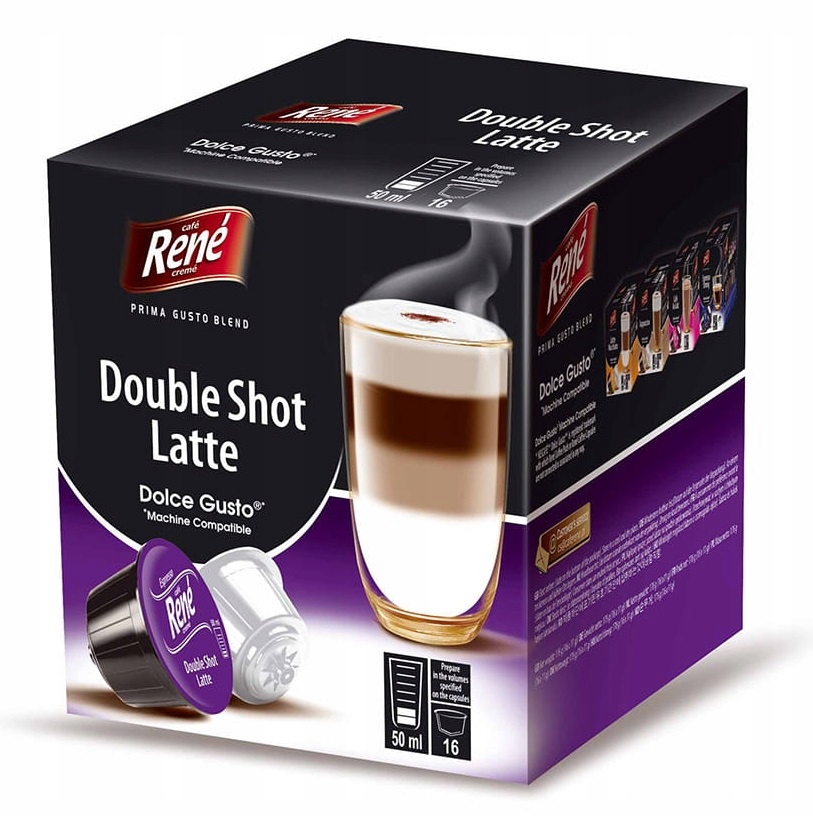 René Double Shot Latte – молочный латте с двойным акцентом кофе в капсулах для Dolce Gusto
