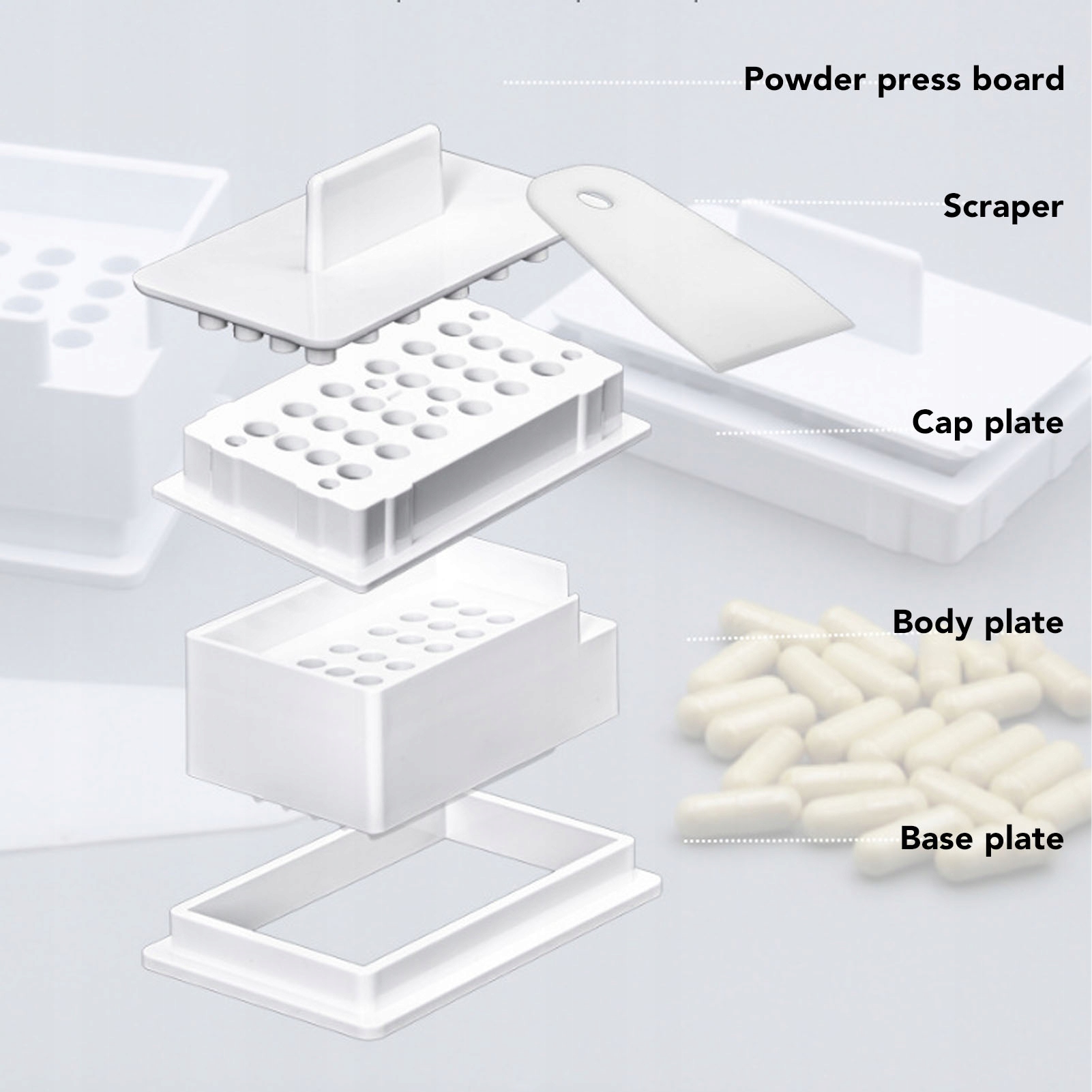 3. Высокая эффективность: пластина для наполнения капсул повышает скорость и эффективность укладки капсул, экономя время и усилия в процессе наполнения.