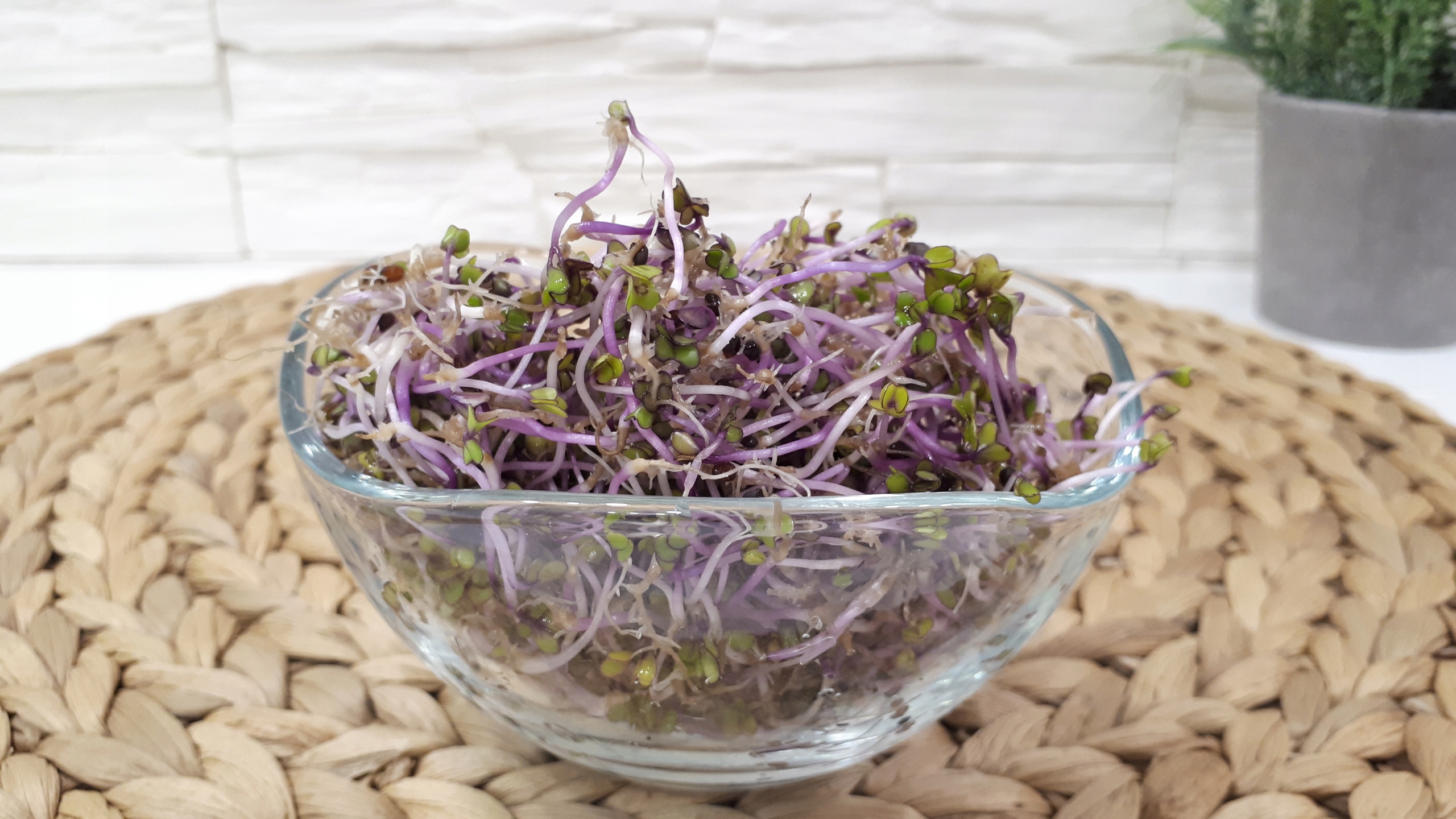 Проростки красной капусты – отличный продукт для людей, которые заботятся о своем внешнем виде и здоровье. Ростки имеют довольно пикантный вкус, но их полезные свойства бесчисленны. Проростки можно есть сырыми или добавлять их практически во что угодно: в йогурт, салат, рис или крупу или в коктейль.