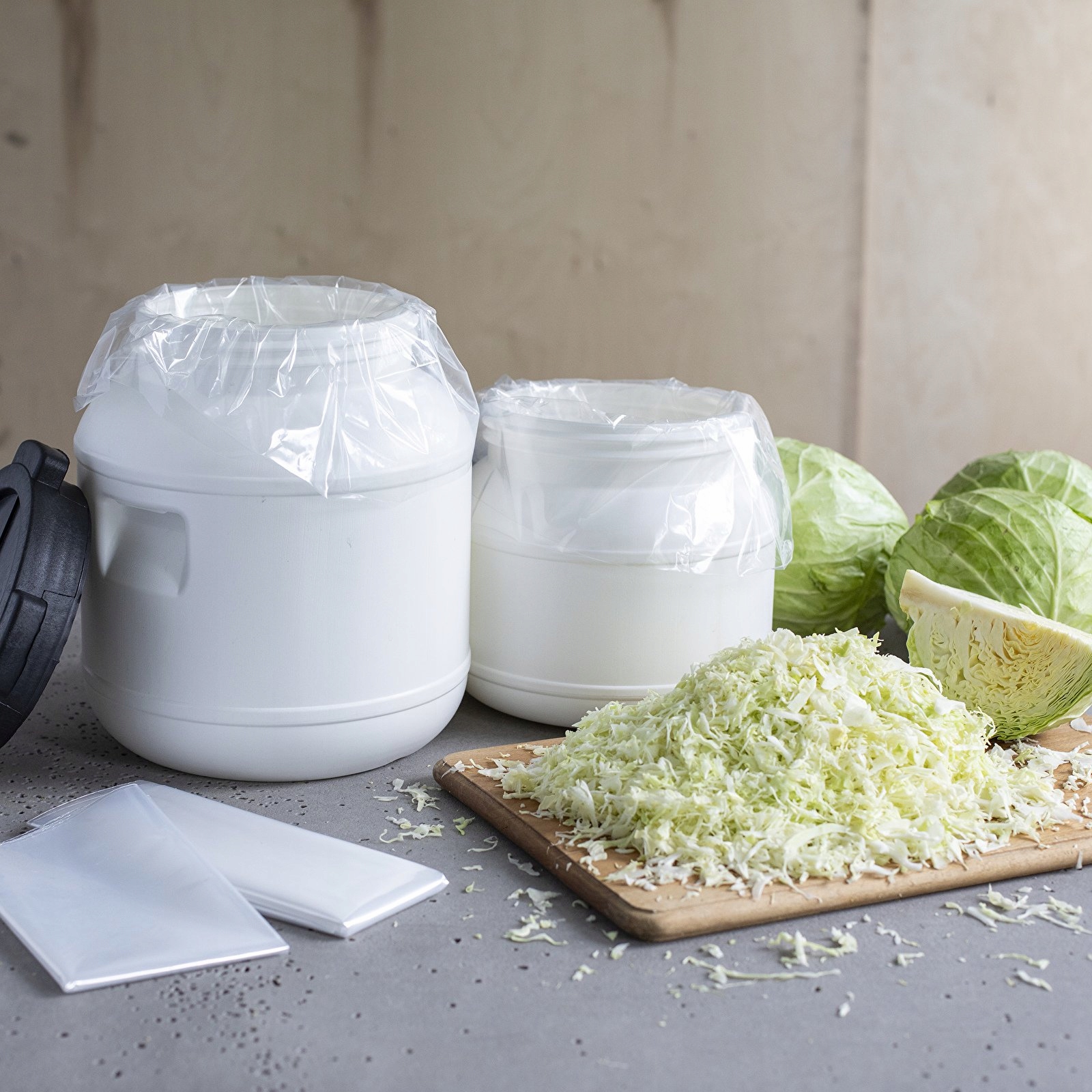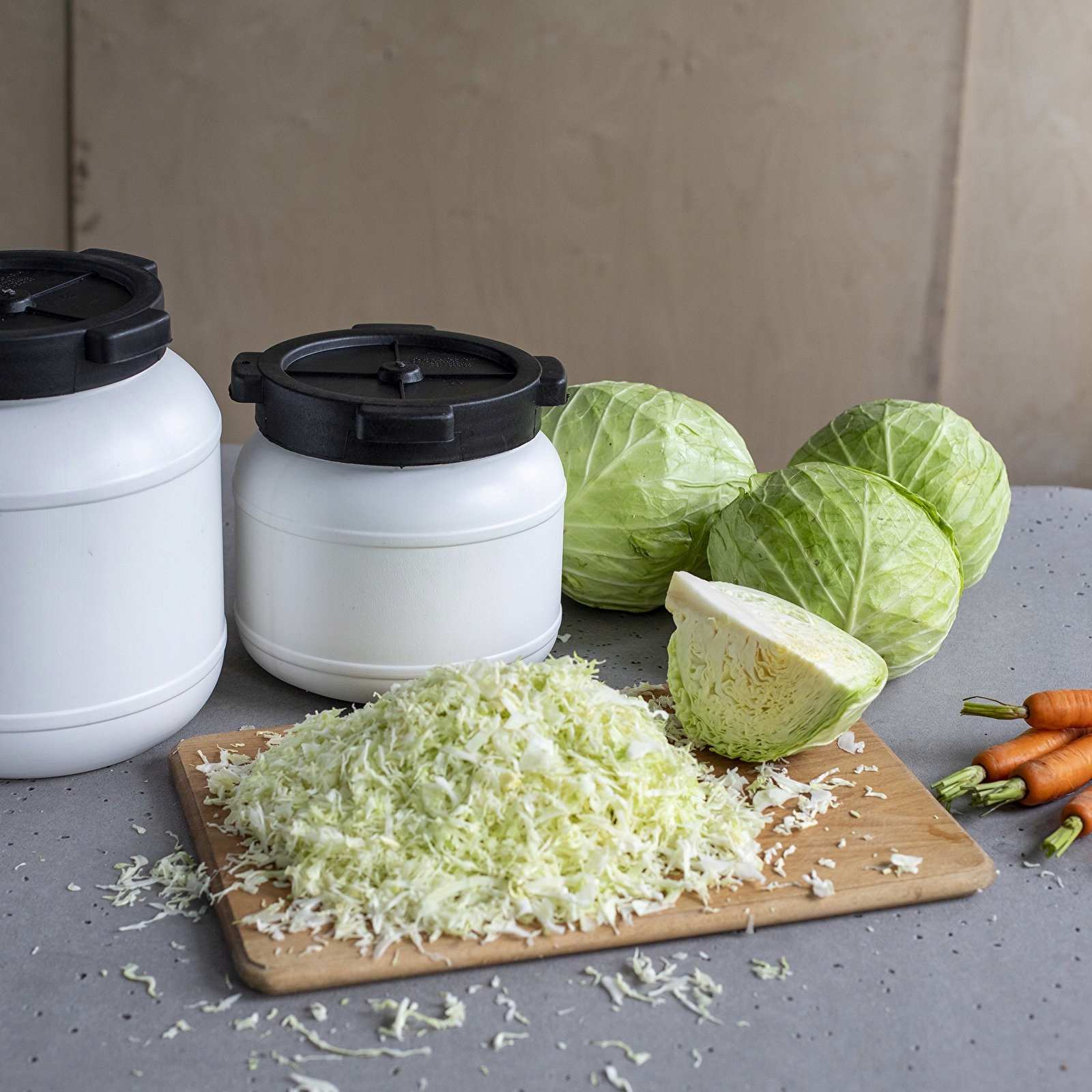 Универсальная и универсальная белая пластиковая бочка размерами 25,3 см х 25,3 см х 28,3 см, с крышкой, идеально подходящая для приготовления солений, например, капусты или огурцов, а также контейнер для хранения.