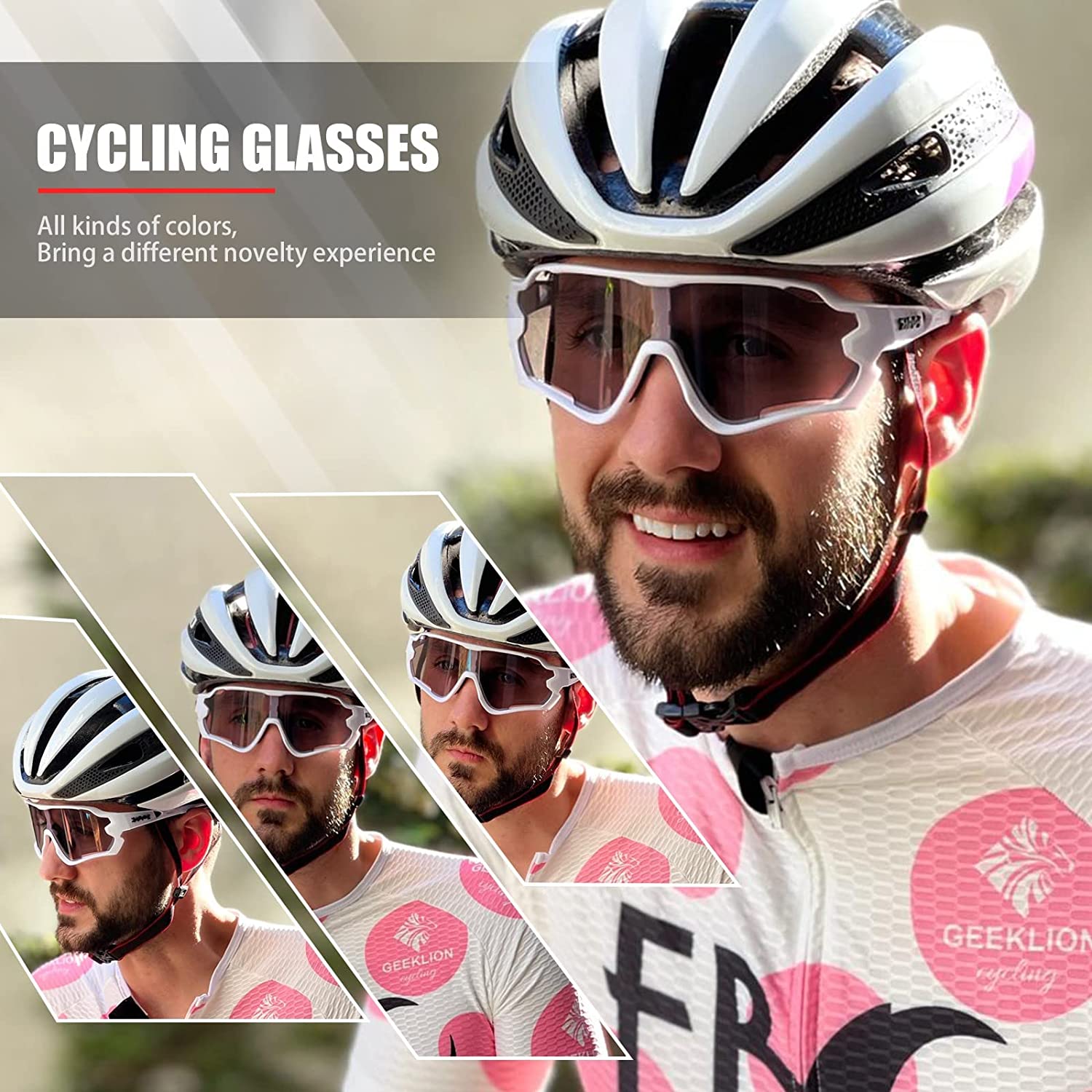 【Защита UV400】Эти фотохромные велосипедные очки изготовлены из высококачественных линз и сверхлегкой оправы с памятью TR90. Прозрачные линзы также имеют защиту UV400, могут блокировать вредные лучи UVA и UVB, безопасны, долговечны и ударопрочны.