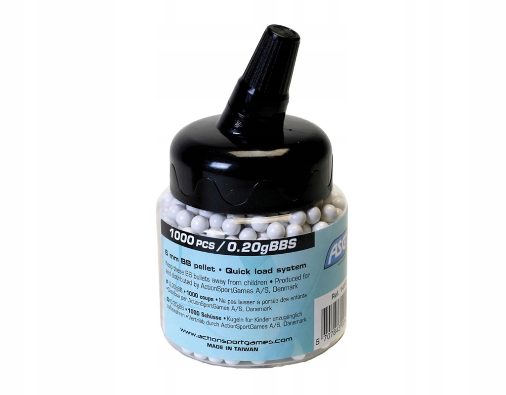 Шарики ASG массой 0,20 г упакованы в практичный контейнер для облегчения загрузки шариков.