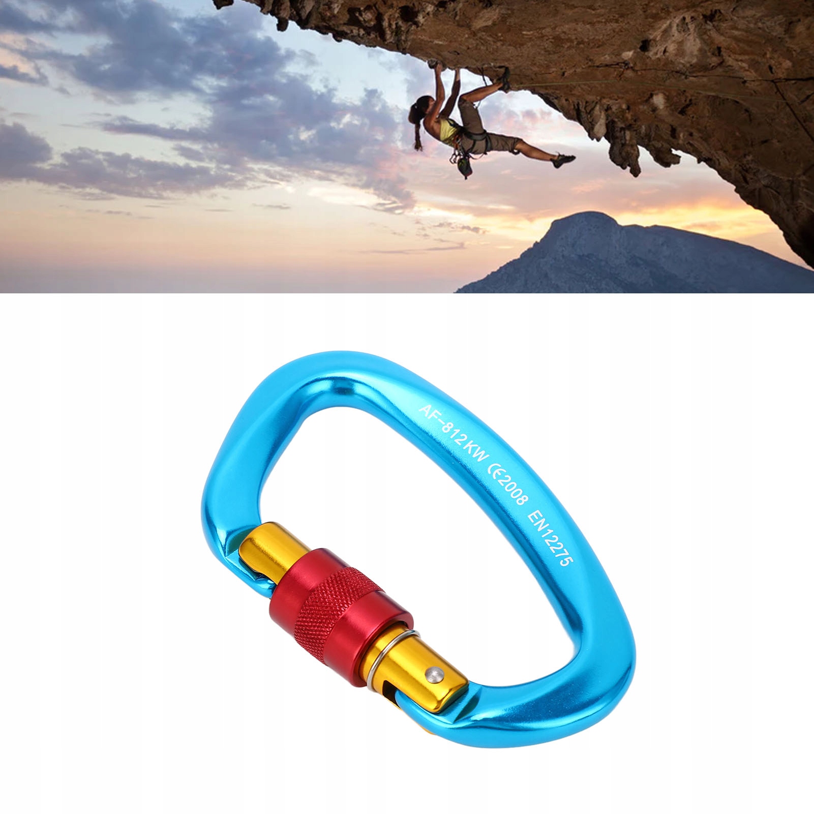 D-карабин из алюминиевого сплава с автоматической блокировкой, прочный карабин с D-образным кольцом для альпинизма, кемпинга, синий