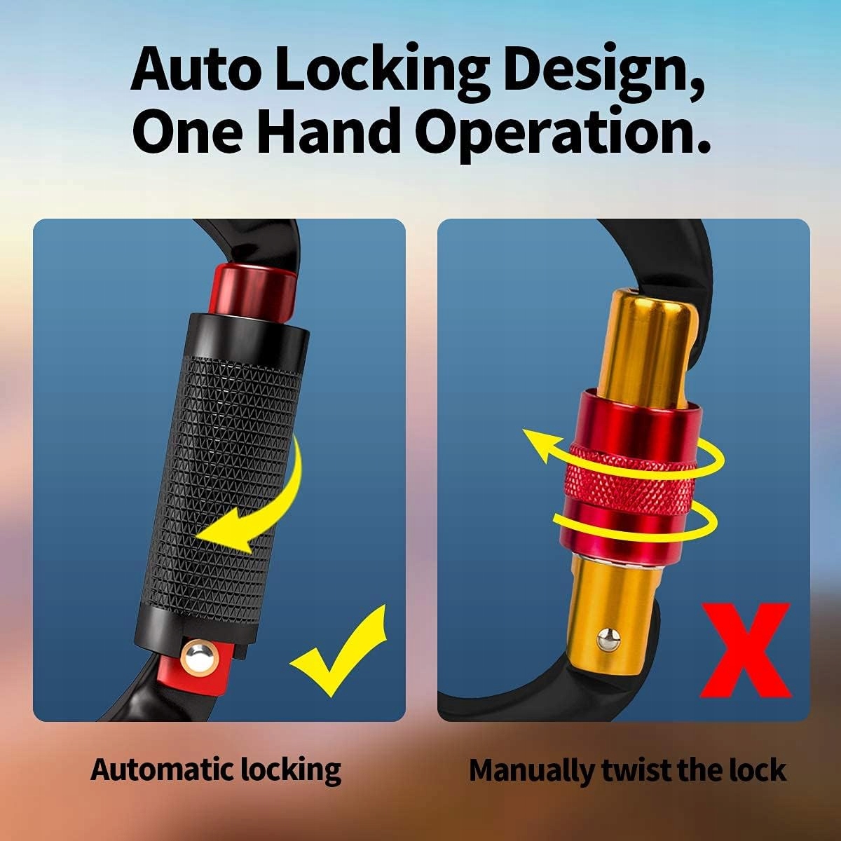 Вам не нужно вращать винт или борьбу. Благодаря системе Twistlock Auto-Lock , карабинер сам блокирует. Достаточно одного хода - даже с перчатками или одной рукой. Быстро, безопасно и удобно.