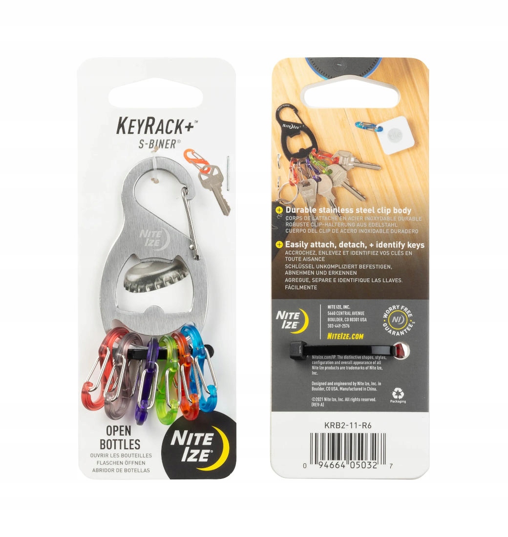 Брелок Nite Ize S-Biner KayRack Plus с открывашкой представляет собой высококачественный карабин из нержавеющей стали с надежной застежкой на одном конце, позволяющий прикрепить ключи к существующему кольцу для ключей, петле для ремня, ремню сумки, петле на молнии или D-образному кольцу. На другом конце находятся шесть пластиковых карабинов S-Biner разных цветов, идеально подходящих к шести отдельным ключам. Определите свои ключи по цвету и легко подключайте и отпускайте их по отдельности из зажима. Больше не нужно возиться с разъемными кольцами или искать нужный ключ. Внутренняя часть предназначена для использования в качестве удобной открывалки для бутылок. Подробная информация о продукте: Включает 6 пластиковых контейнеров S-Biner размера 0, сочетающих в себе инновации и универсальность S-Biner, обеспечивающих исключительную функциональность и доступ к вашим ключам. Имеет прочный карабин из нержавеющей стали, который позволяет прикрепить кольцо для ключей к существующему брелоку, сумочке, куртке, ремню или другому удобному месту. Также можно использовать как удобную открывалку для бутылок. Размеры 90 x 36,5 x 14 мм. Вес 24,00 г