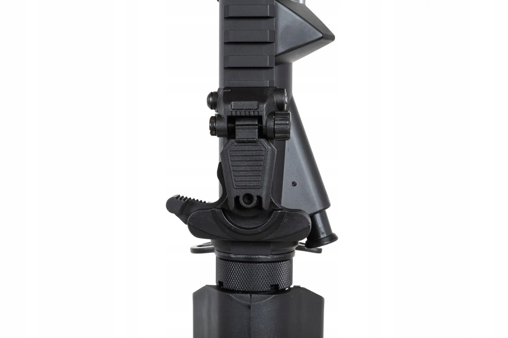 <р> - индивидуальный серийный номер, нанесенный на корпус, дополнительно подтвержденный голограммой, <р> - внешний ствол имеет резьбу 14 мм против часовой стрелки, <р> - складные прицельные приспособления, <р> - стальной прецизионный внутренний ствол диаметром 6,02мм, что обеспечит высокую точность и повторяемость выстрелов, <р> - поворотная камера Hop-Up TDC Magnus™ (сверху вниз по центру), обеспечивающая очень точную и стабильную регулировку(защищено европейским патентом № 015052069-0001) <р> - Резиновая лента Helium™ Flat Hop улучшит устойчивость мяча. <р> - Система быстрой замены пружин ESA2™ - позволяет быстро и эффективно регулировать мощность реплики в соответствии с ожидаемыми условиями на игровом поле без необходимости использования инструментов (защищено европейским патентом №: 007422159-0001), <р> - В комплект добавлена основная пружина M90, которая идеально подходит для игр в помещении, <р> -Коробка передач Æther™ – усиленная рама (защищена номером европейского патента: 015044865-0001), оснащенная:- функция освобождения основной пружины