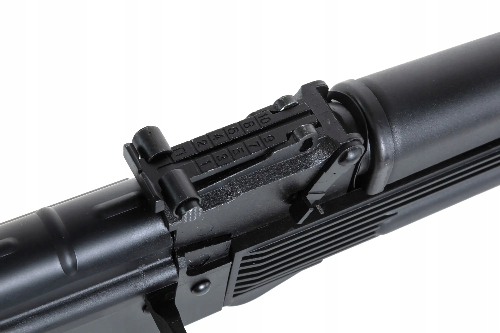 Прочный пластик состоит из: пистолетной рукоятки, магазина, складного приклада, цевья и крышки газовой трубки.