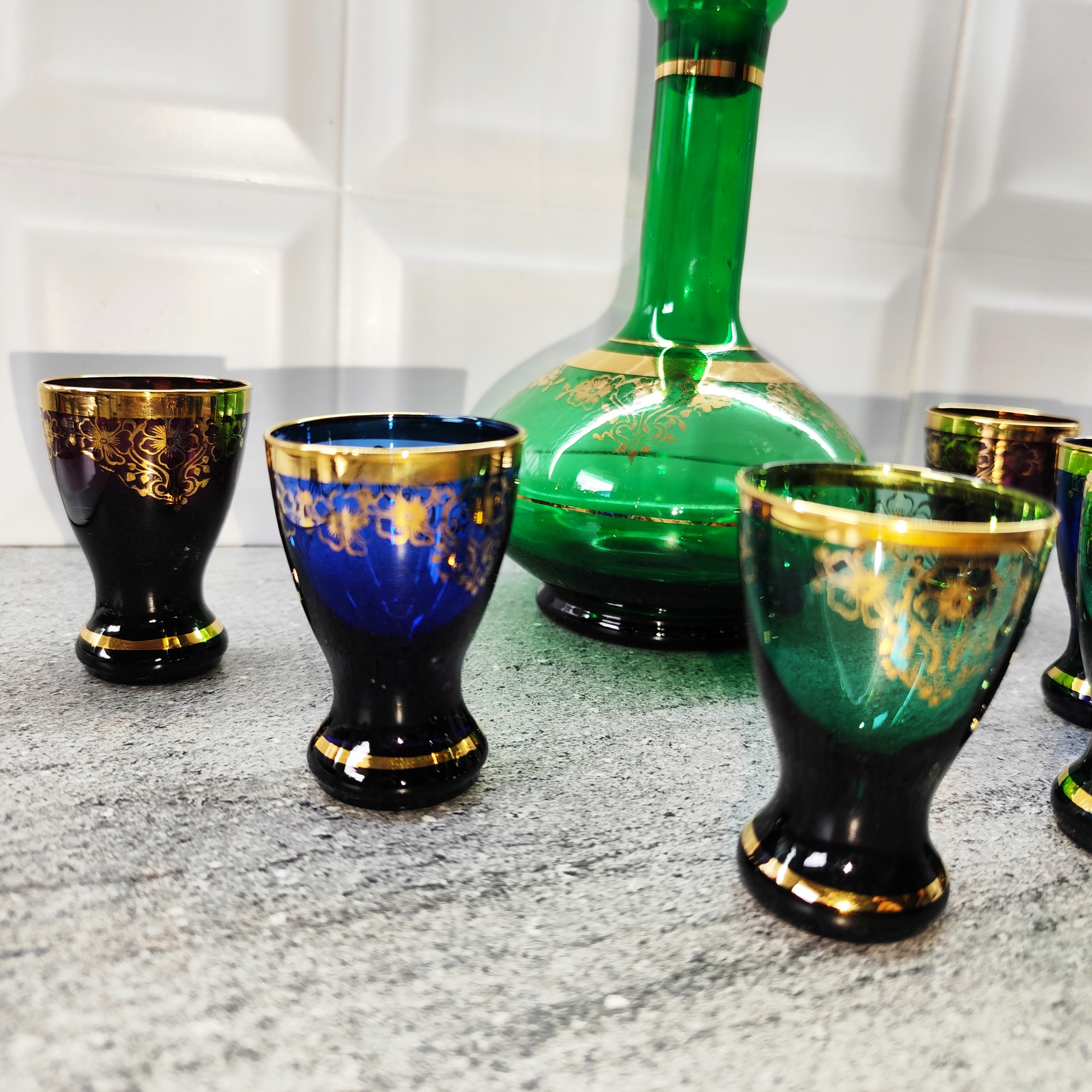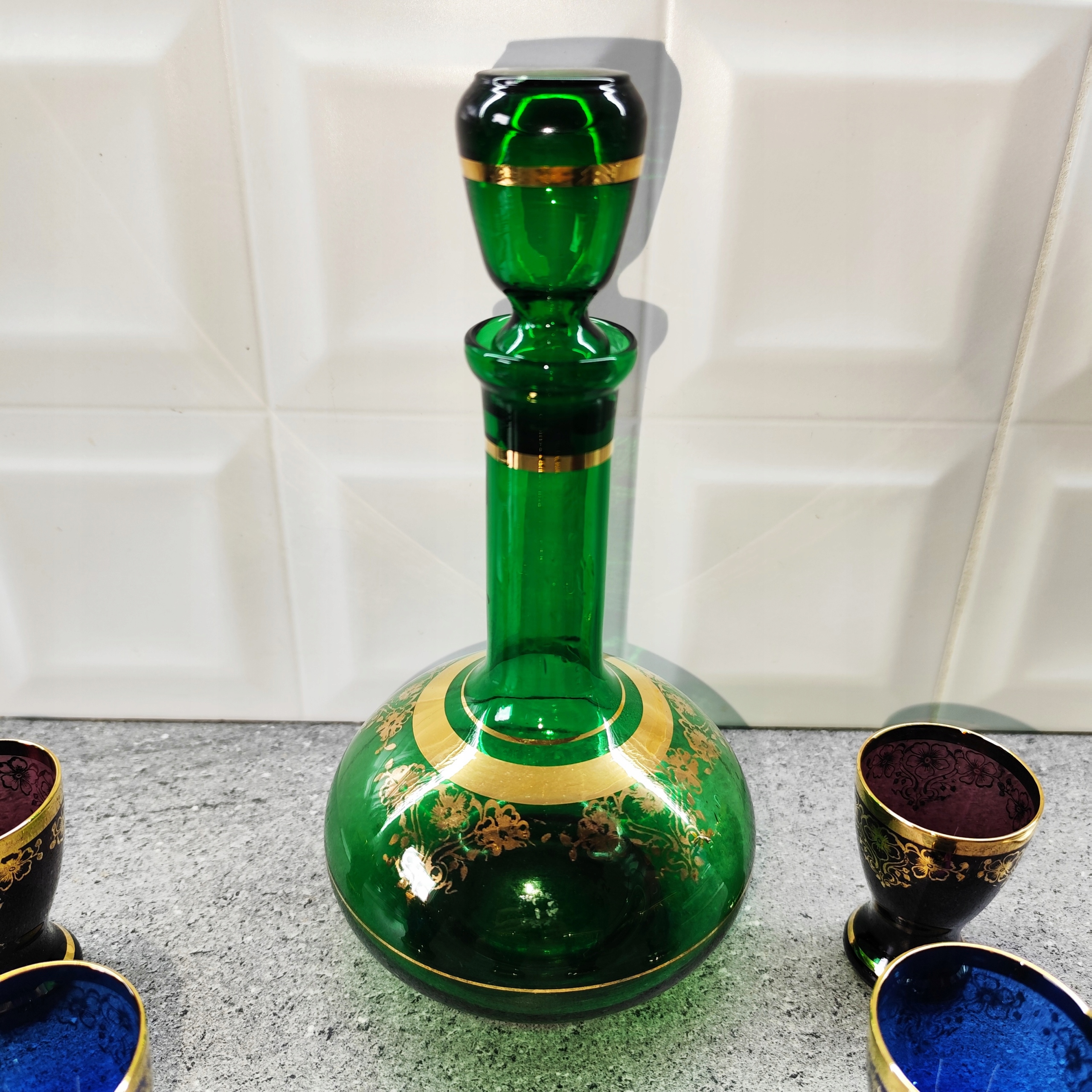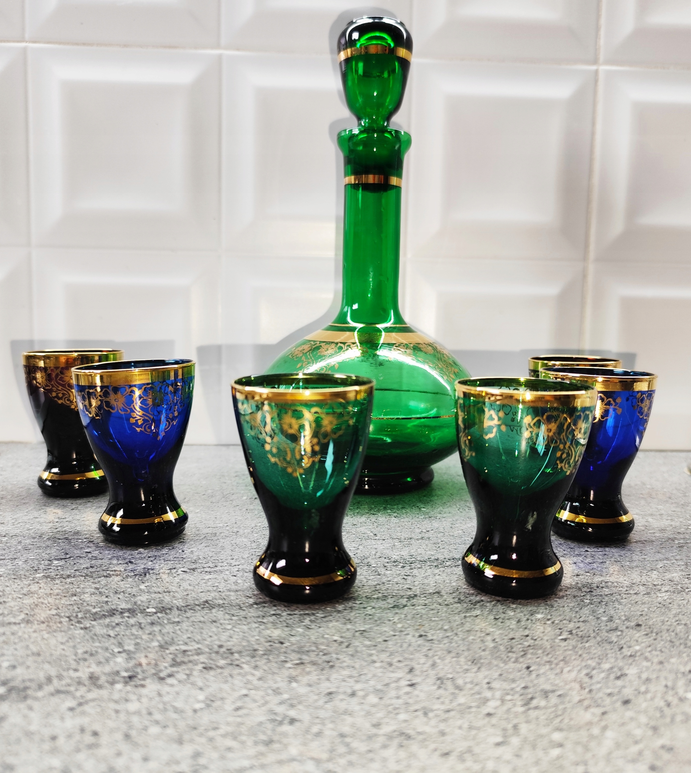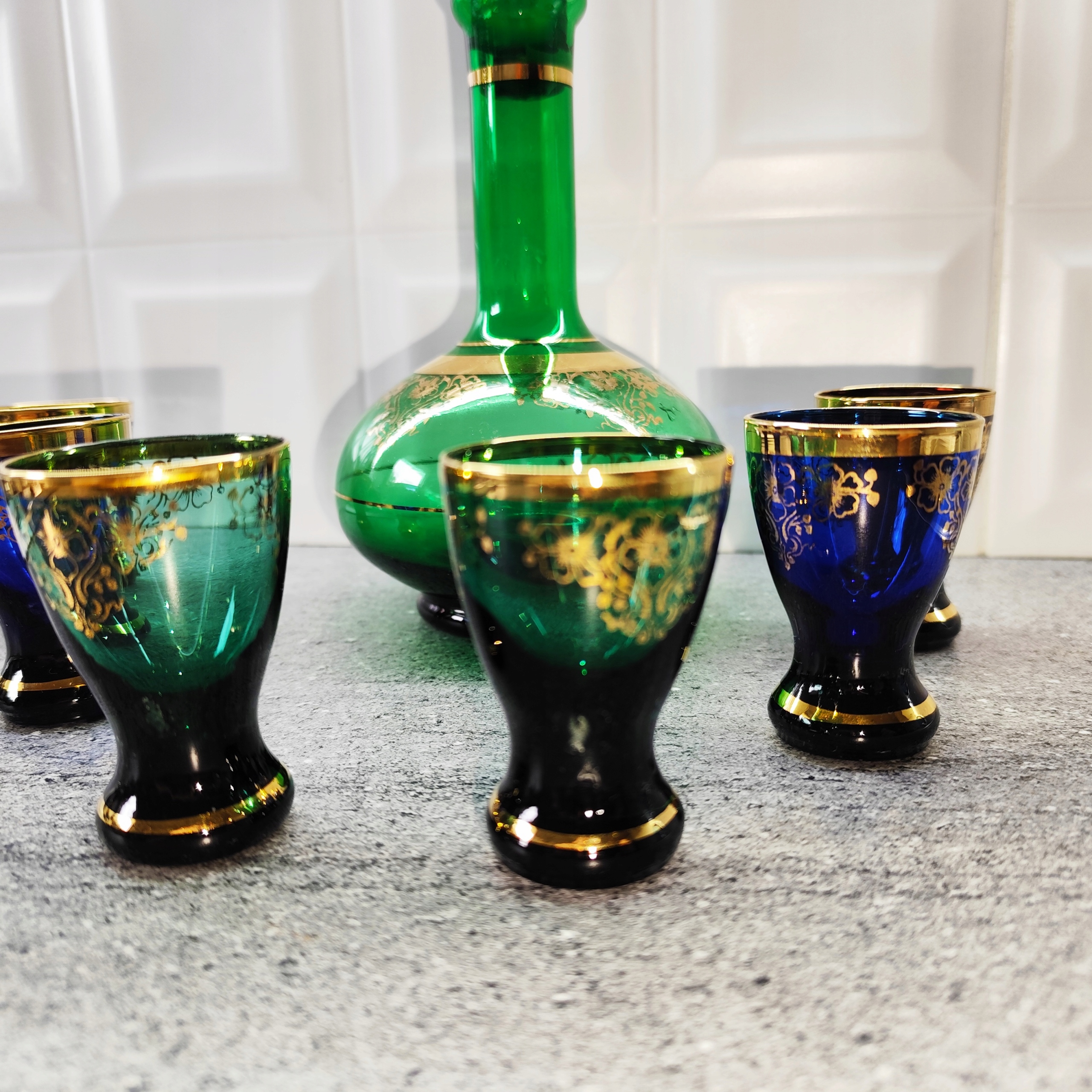 Стеклянный графин со стаканами, набор зелёных стеклянных графинов + бесплатно