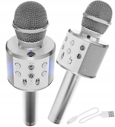 - ПРИВЛЕКАТЕЛЬНЫЙ ВНЕШНИЙ ВИД - блестящий, металлический цвет всегда очень популярен. Впечатляющий дизайн дополняется нежной подсветкой динамиков, которая при включении светится синим цветом. На выбор доступно целых 4 цвета микрофона – черный, серебристый, светло-розовый и розовый. Это идеальная идея для подарка независимо от возраста.