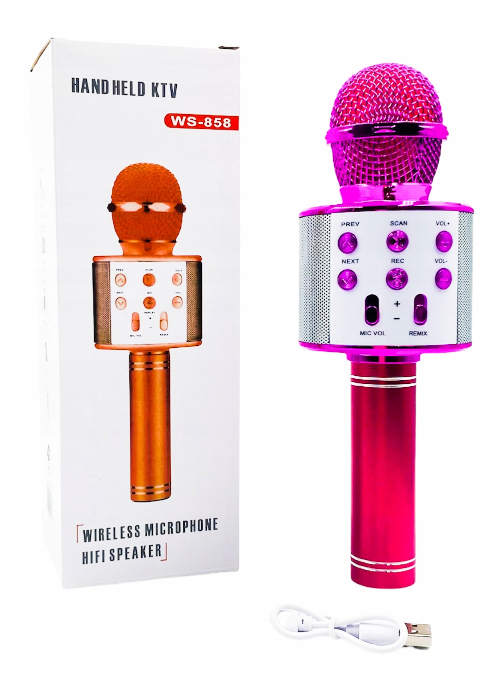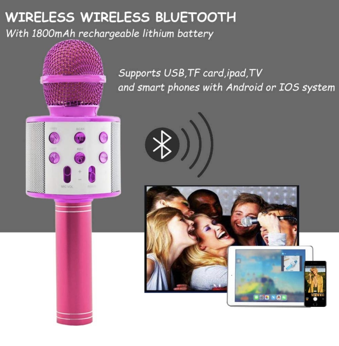 БЕСПРОВОДНОЙ МИКРОФОН ДЛЯ КАРАОКЕ, РОЗОВЫЙ ДИНАМИК BLUETOOTH