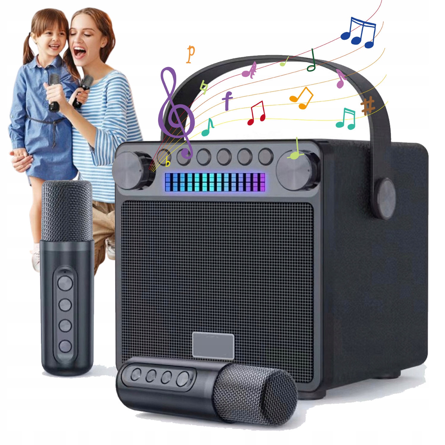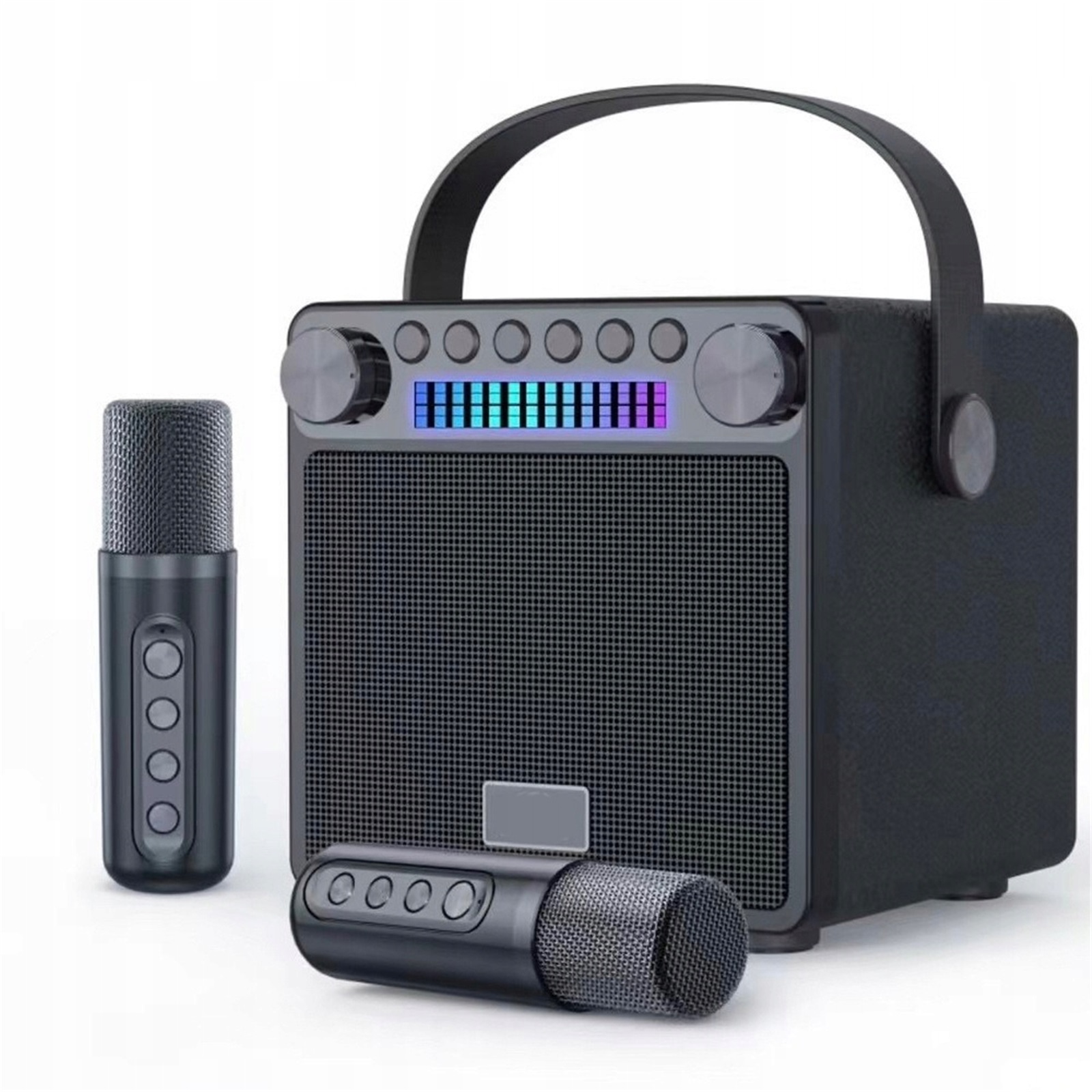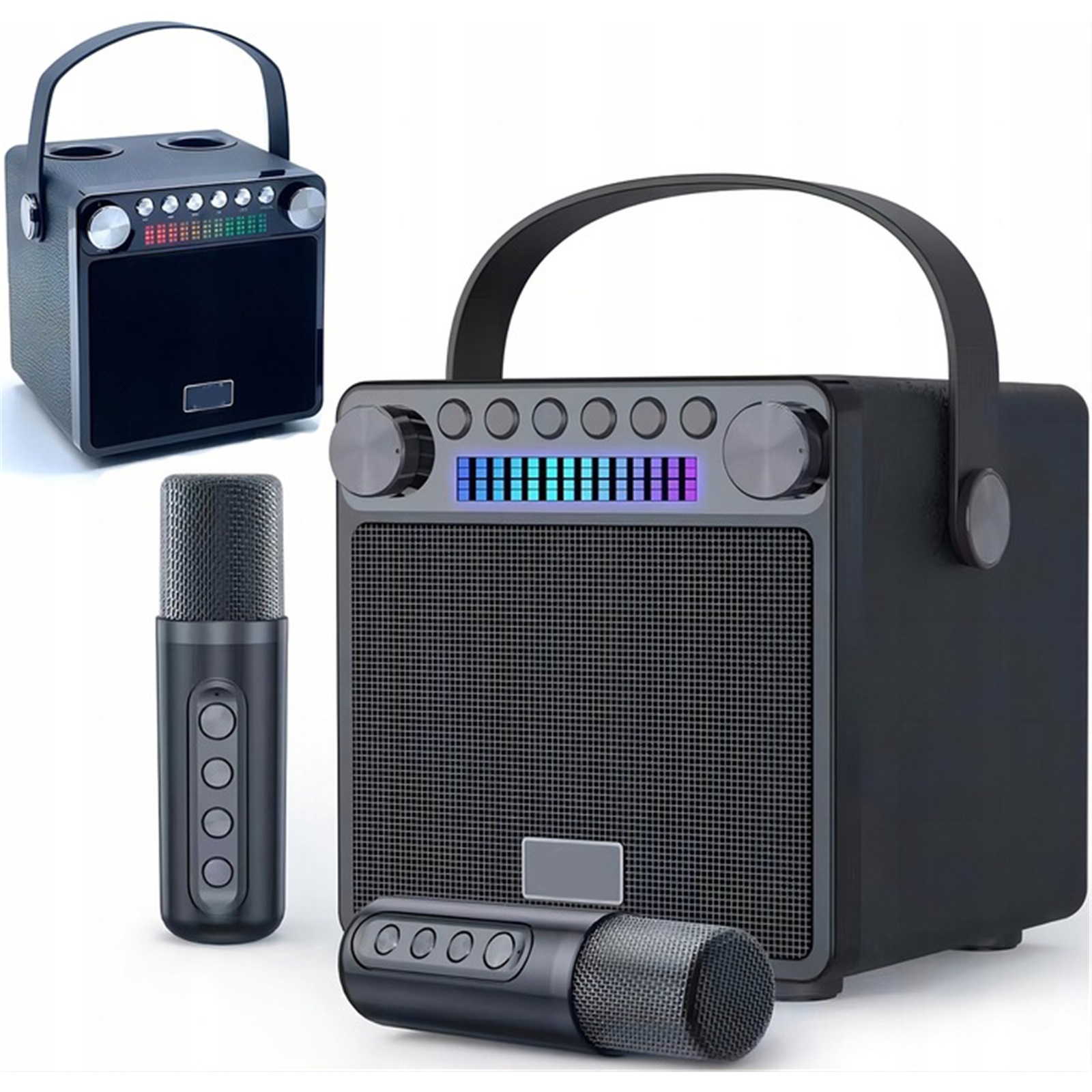 КАРАОКЕ-ДИНАМИК С 2 БЕСПРОВОДНЫМИ МИКРОФОНАМИ BLUETOOTH С ЦВЕТНЫМ СВЕТОДИОДОМ
