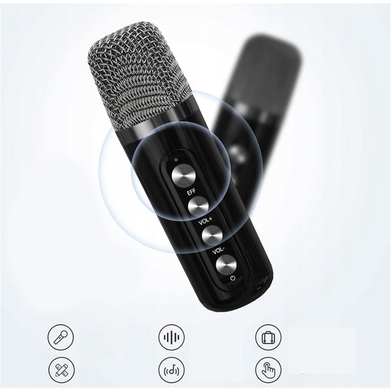 - Наш набор Bluetooth-караоке с 2 беспроводными микрофонами включает семь потрясающих голосовых эффектов: «Оригинальный», «Монстр», «Детский», «Женский» и «Мужской», а также 2 микса, которые могут удовлетворить больше потребностей и доставить больше удовольствия.