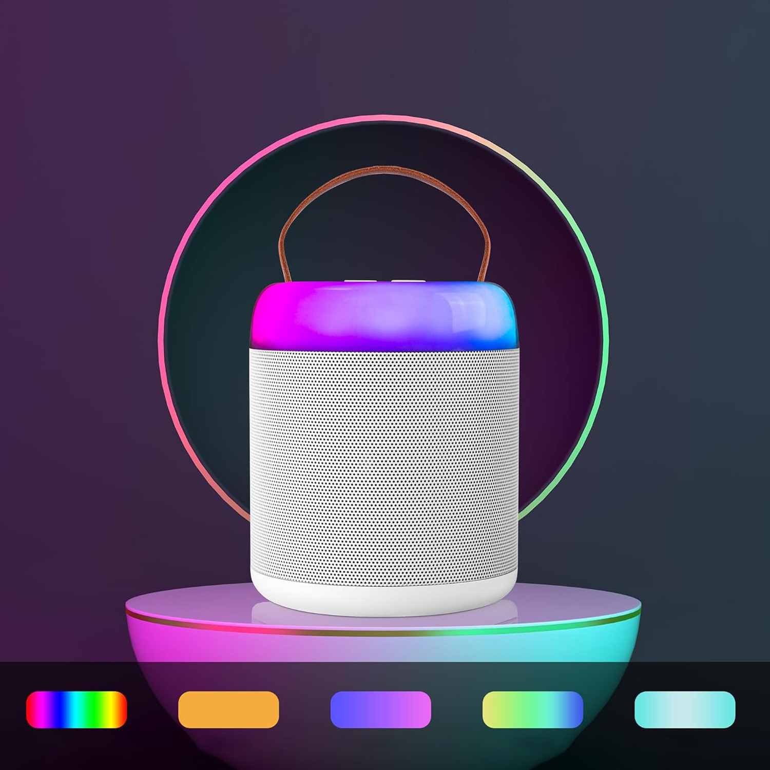KARAOKE DLA DZIECI I DOROSŁYCH PRZENOŚNY GŁOŚNIK 2 MIKROFONY LED BIAŁY