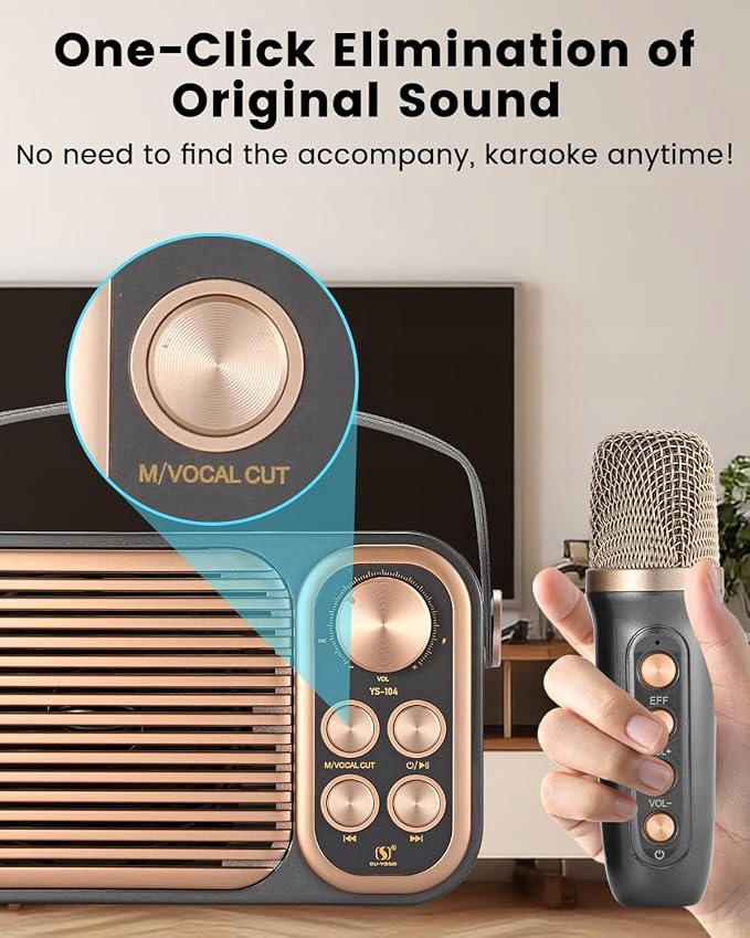 Откройте для себя новое измерение веселья с беспроводной караоке-машиной! Благодаря простому управлению, голосовым эффектам и длительному времени работы вы создадите незабываемые моменты на каждой вечеринке – дома, на пляже или в саду!