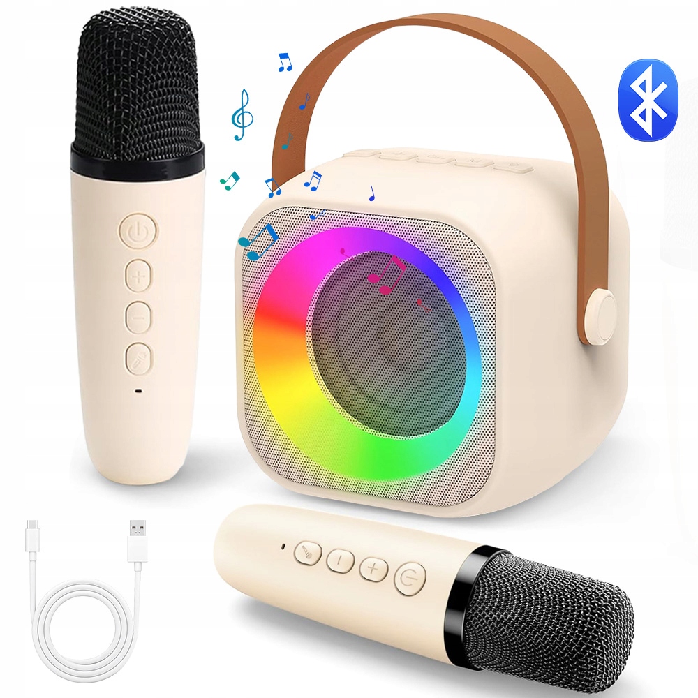 КАРАОКЕ-МАШИНА ПОРТАТИВНА БЕЖЕВОГО КОЛЬОРУ З ДВОМА МІКРОФОНАМИ І BLUETOOTH