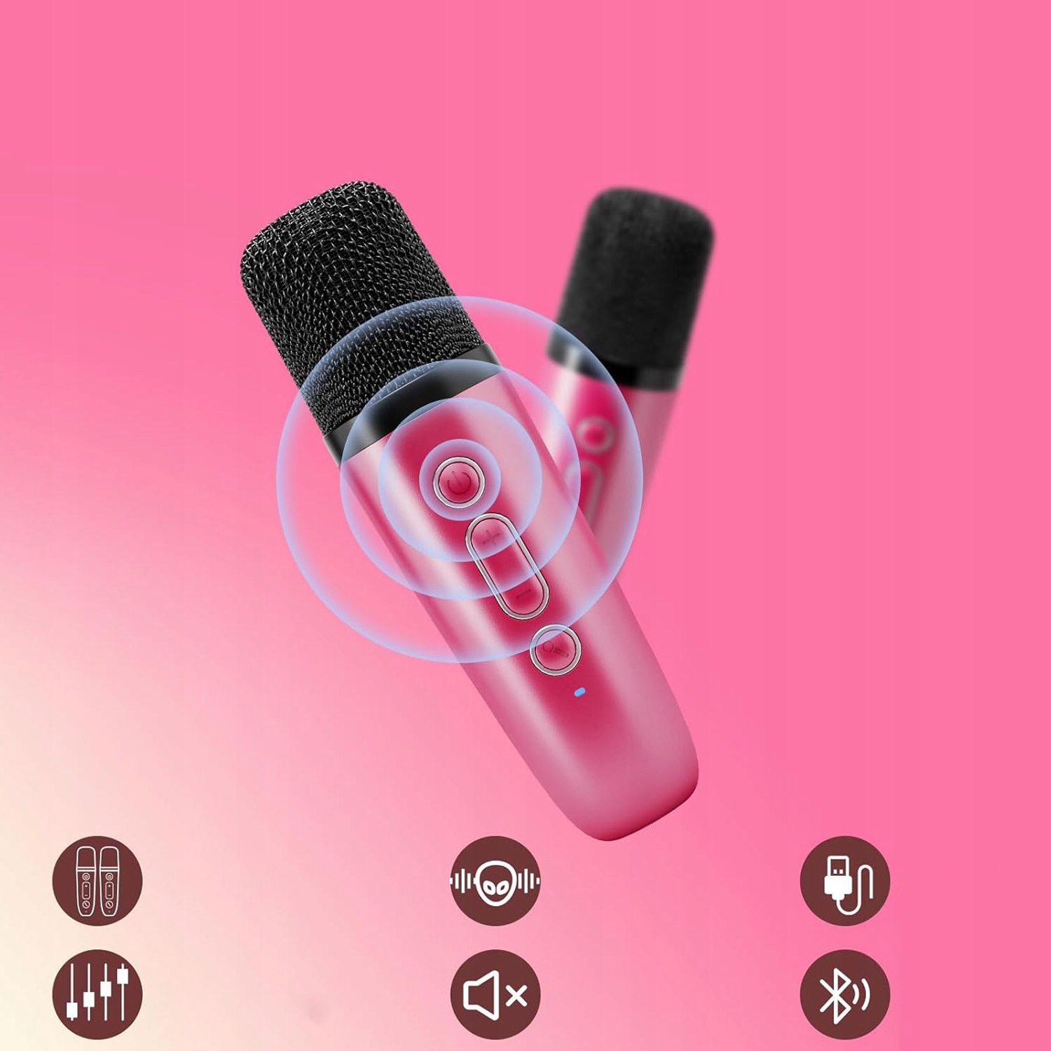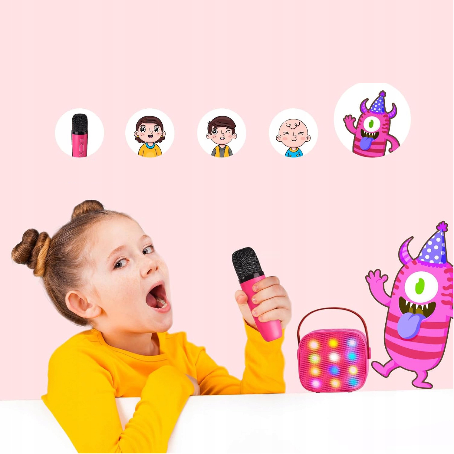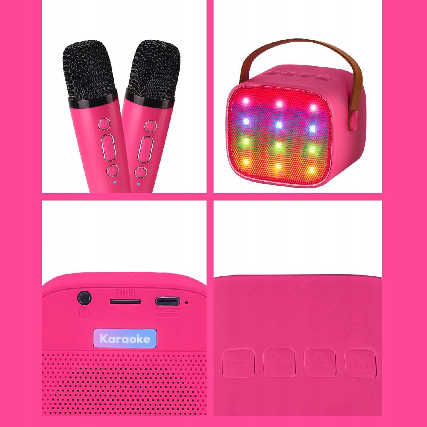 - 🎶 - Устройство для караоке -Bluetooth с 2 беспроводными микрофонами, автоматически подключается к громкости, когда он включен, его диапазон до 10 м, может отдельно контролировать человеческий голос/echo/объем Поддерживает Bluetooth 5.0 , совместимый со смартфонами, настольными компьютерами, ноутбуками и другими музыкальными приложениями, соединение быстро и стабильно. микрофон. Светодиодные огни побеждают ритм музыки, дети будут любить танцевальные огни, которые выпускаются со звуком. Поддержите память TF с помощью MP3 -песен, пение, пение, воспроизводить музыку, слушать песни, как вы хотите.