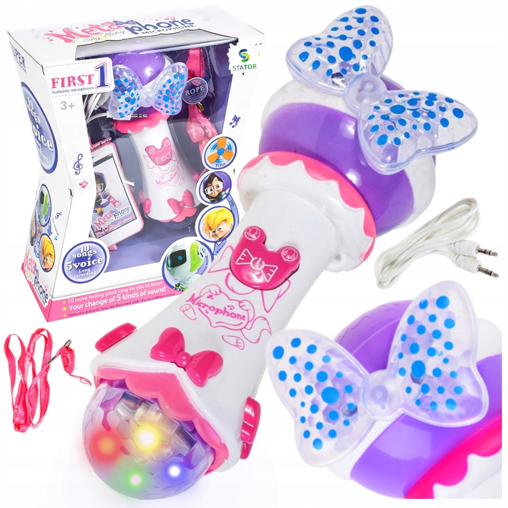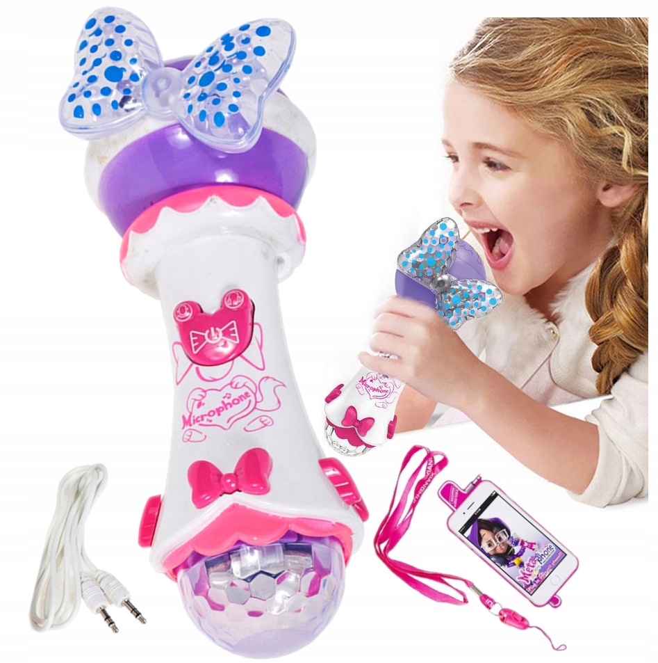 Детский караоке-микрофон отличается сказочным дизайном и приятной для детей расцветкой – красиво оформленный динамик со светодиодами и, кроме того, прост в использовании. Представленный поющий набор станет любимой игрушкой вашего ребенка с первых минут.