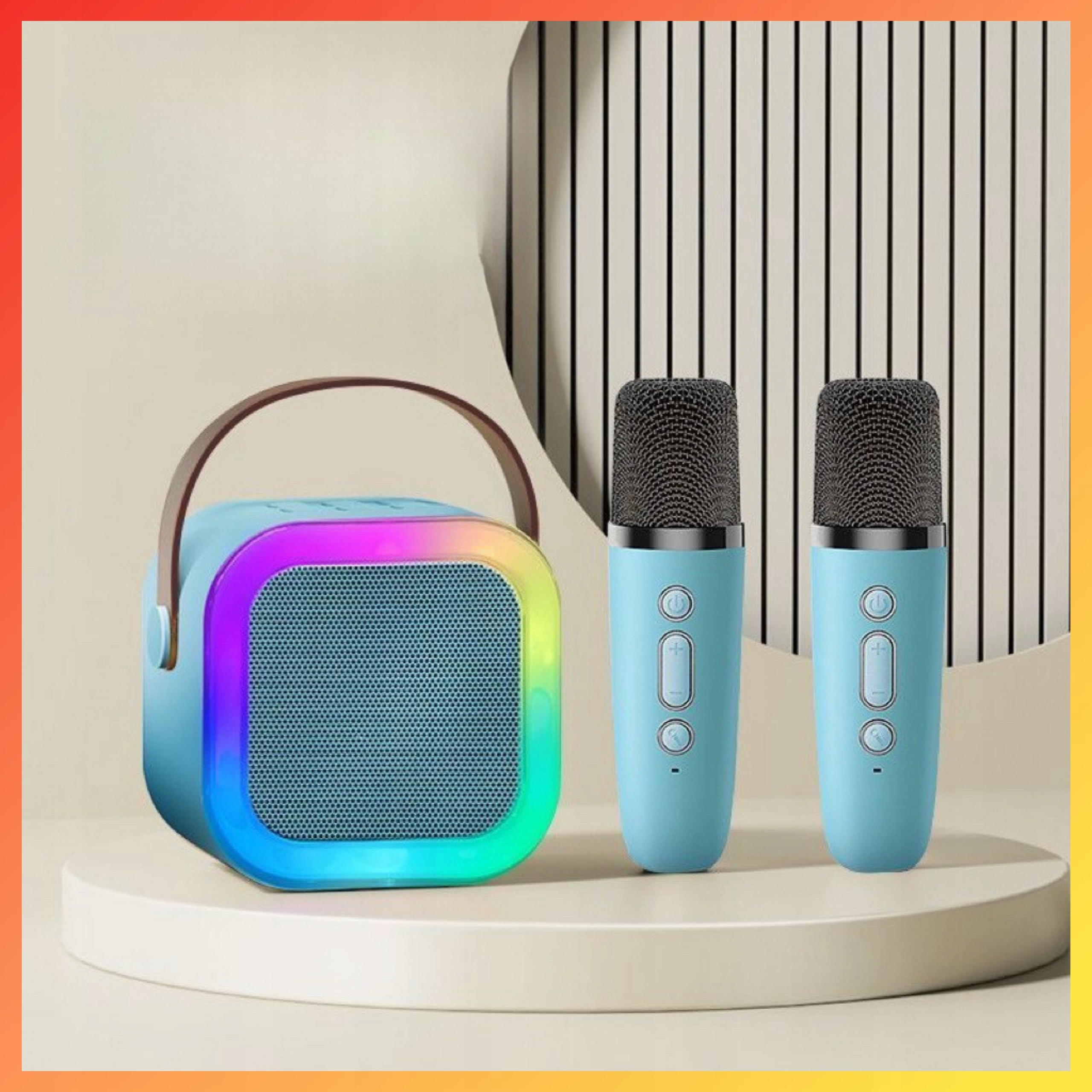 НАБОР КАРАОКЕ ДИНАМИК BLUETOOTH + ДВА МИКРОФОНА RGB ЗВУКОВЫЕ ЭФФЕКТЫ