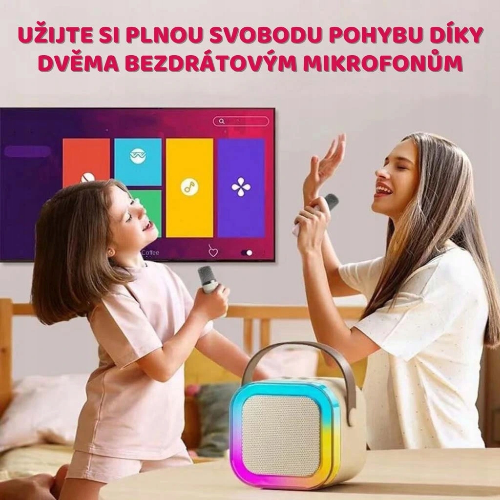 Портативный и стильный мини -караоке с двумя беспроводными микрофонами - идеальный компаньон для каждой партии.